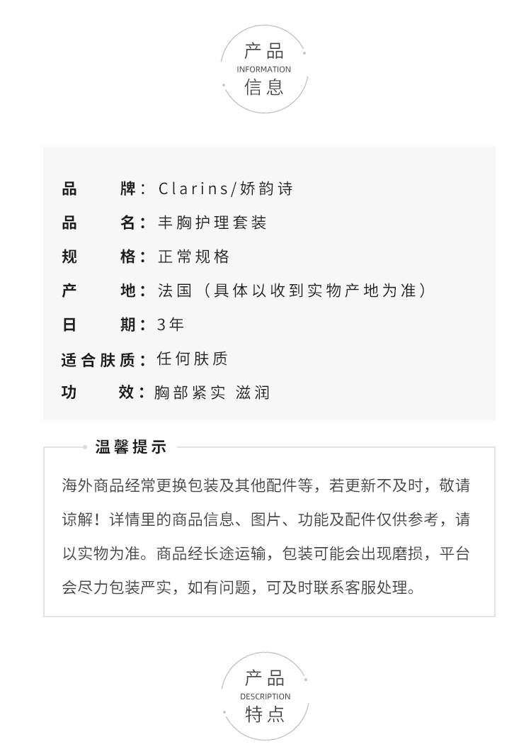 娇韵诗胸部护理套装 美胸丰盈乳50ml+纤挺美胸凝露50ml 饱满紧实坚挺【CDF】