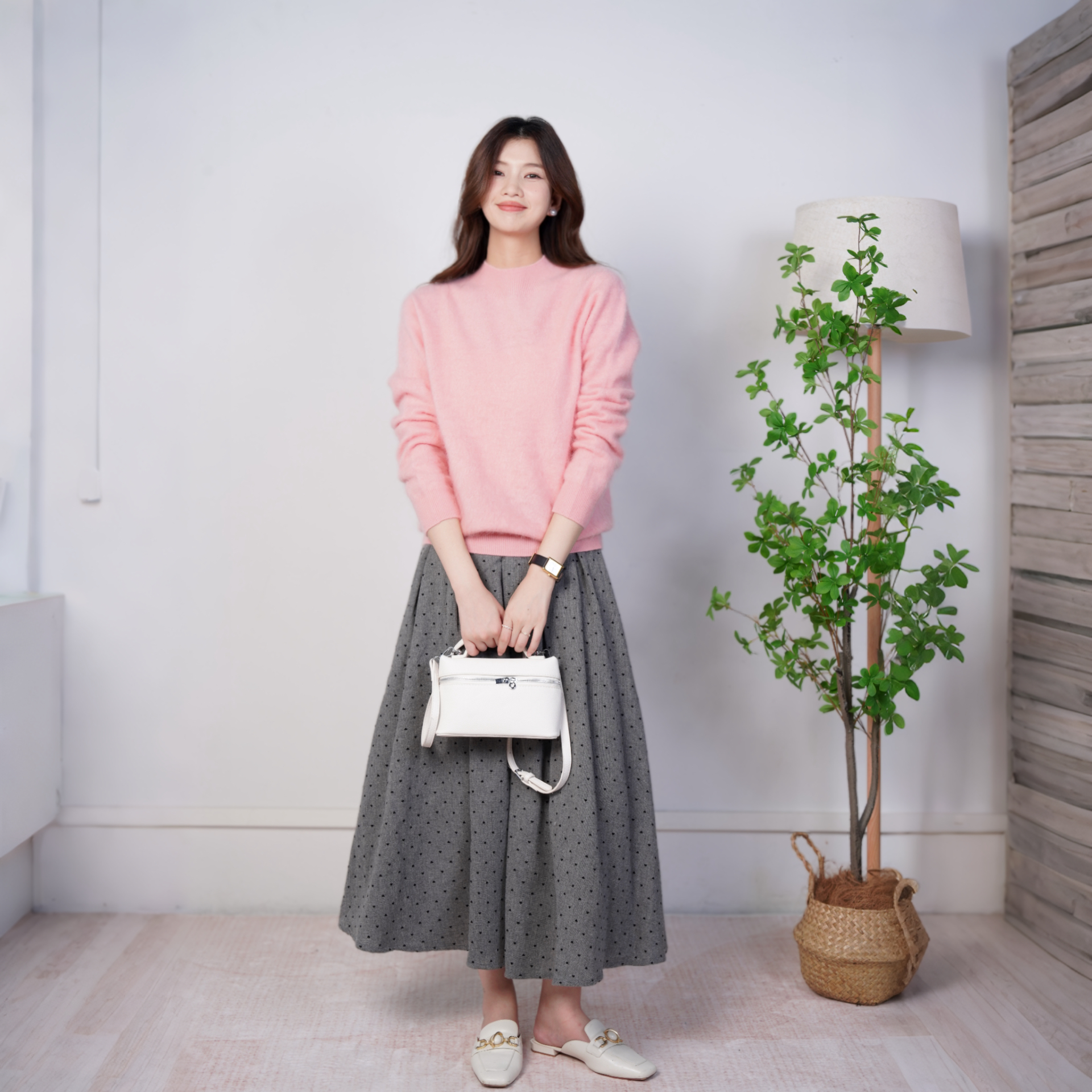 毛呢格子半身裙