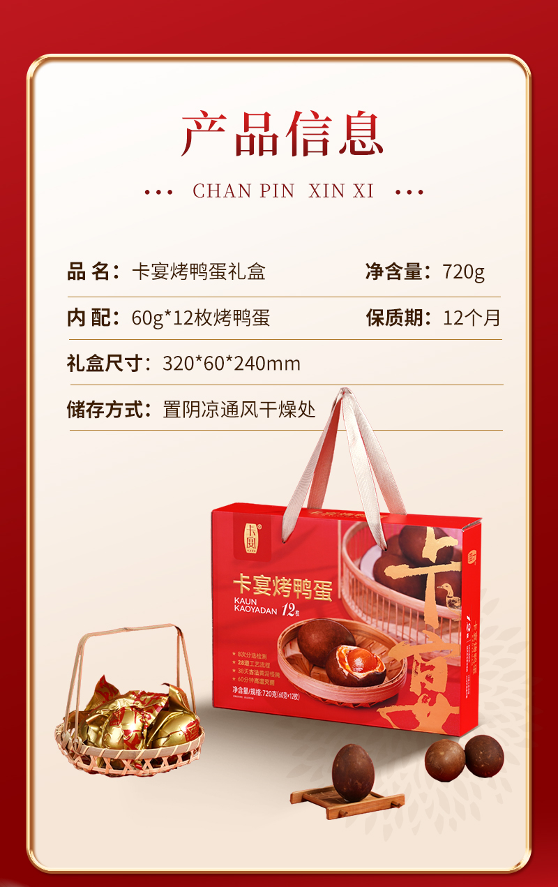 卡宴烤鸭蛋礼盒 60g*12枚【包邮直发】