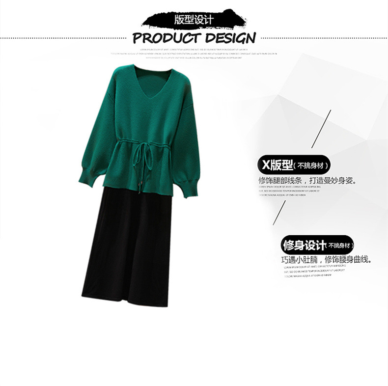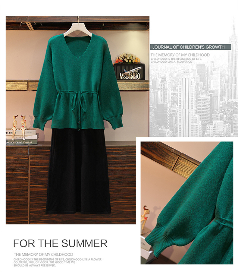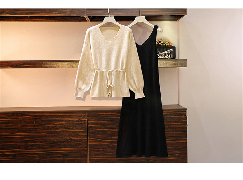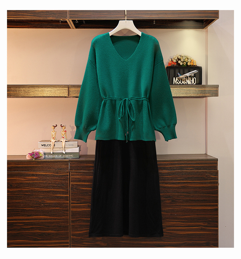 黛唯梵套装大码女装秋冬新款针织毛衣胖妹妹显瘦洋气两件套装连衣裙