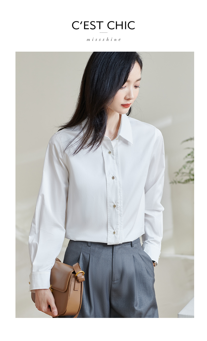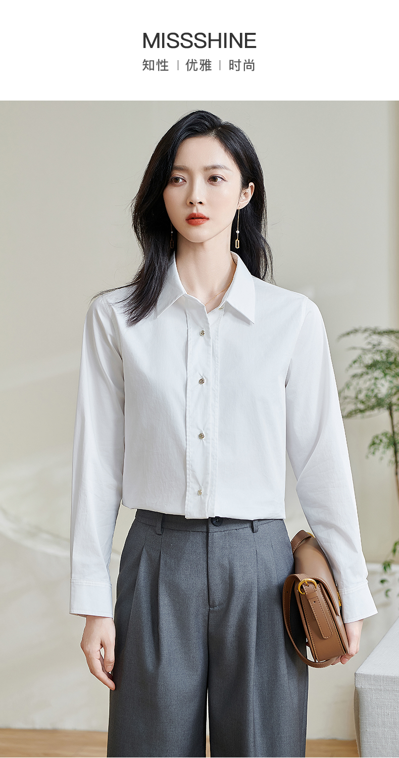 米思阳2025春春季新款气质通勤白色衬衫高级感纯棉宽松上衣女0855
