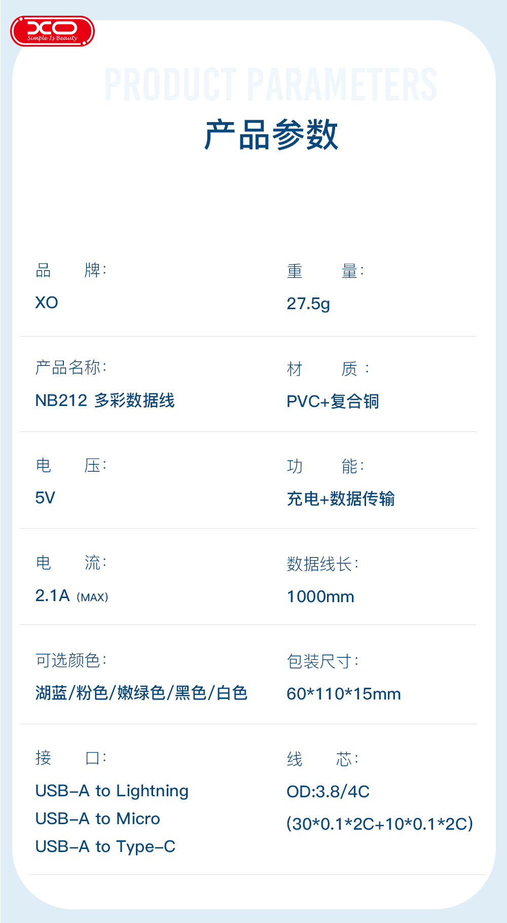 XO花蕊系列数据线XO-NB212