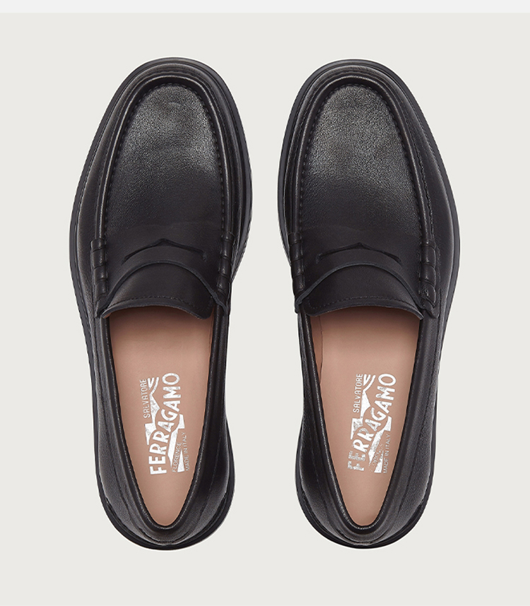 【二】FERRAGAMO 菲拉格慕 男士小牛皮便士乐福鞋 黑色 742243