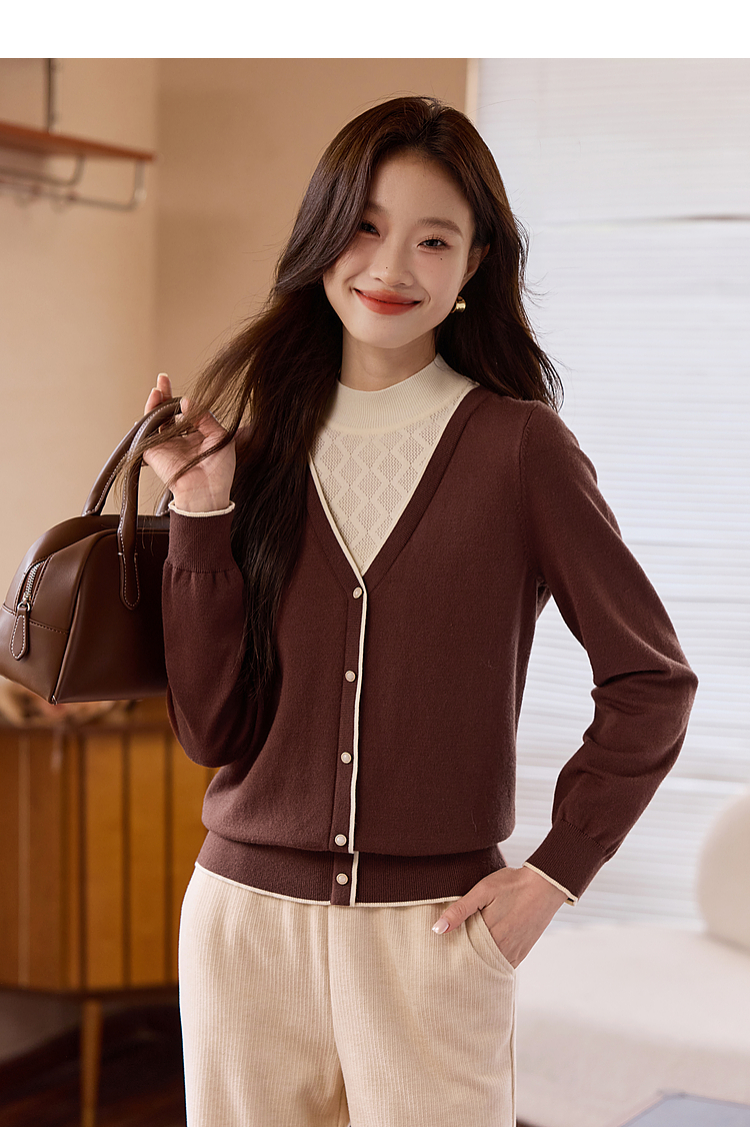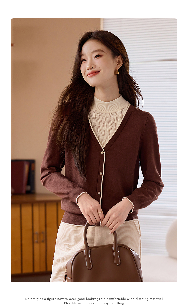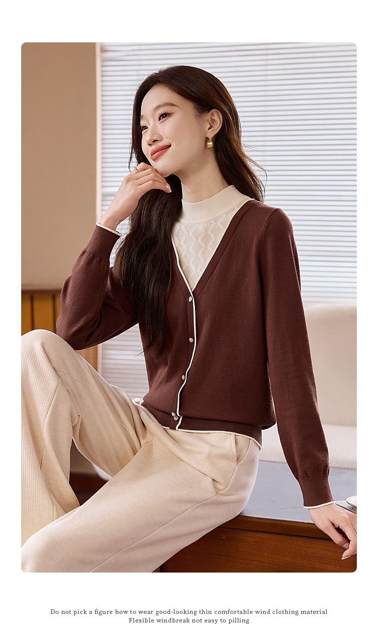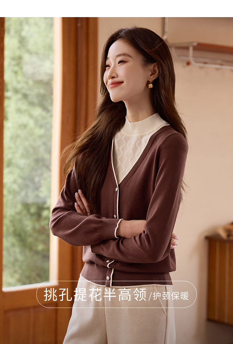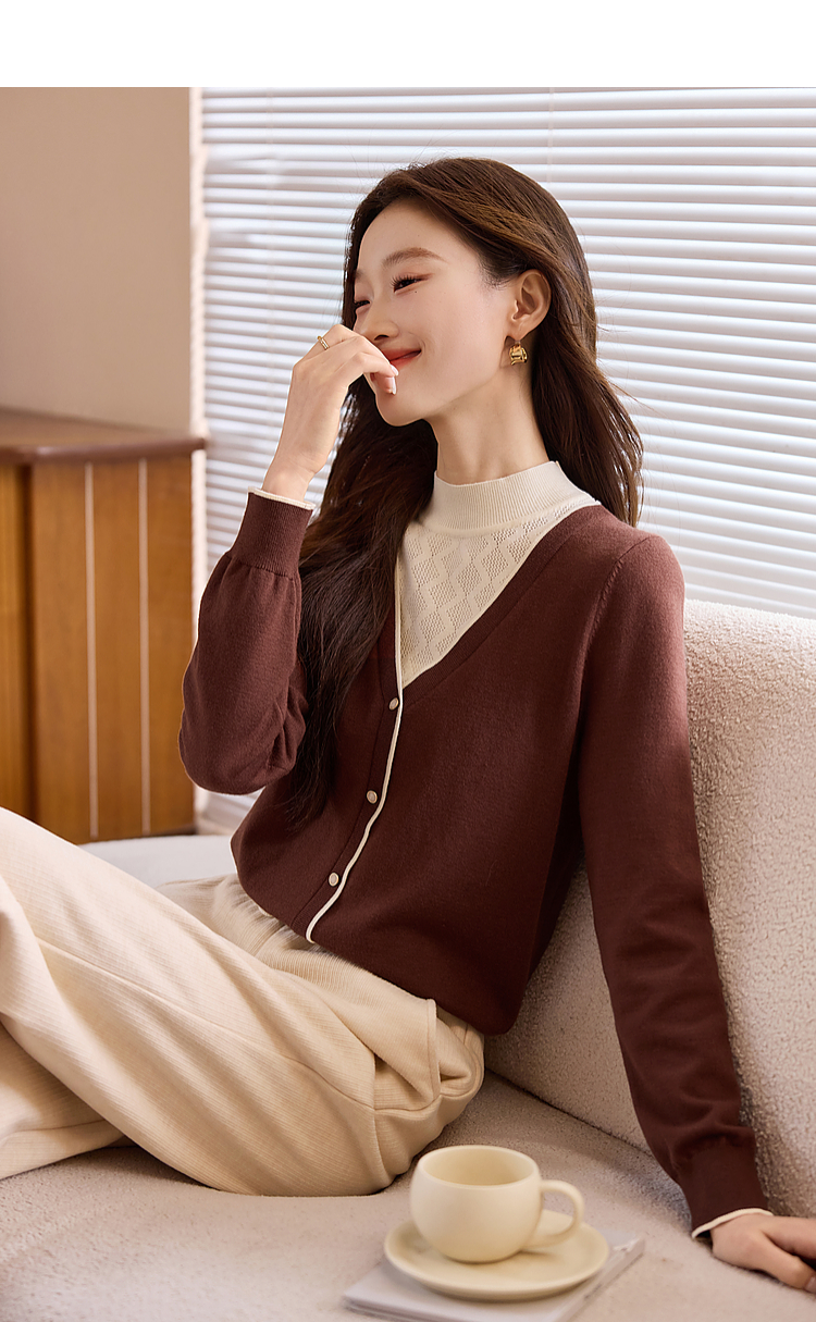 【年终特卖】熙世界2025秋冬新款半高领假两件打底毛衣女设计感小众针织衫上衣