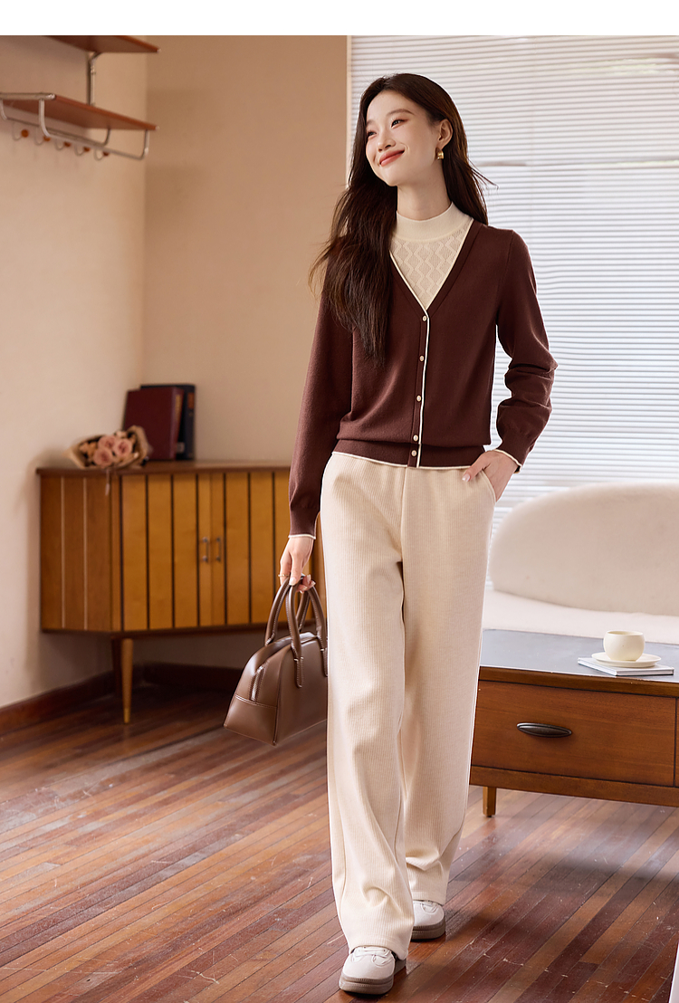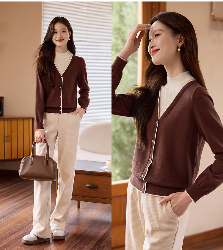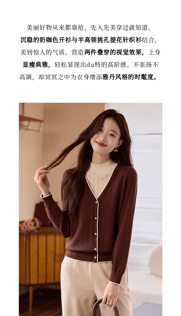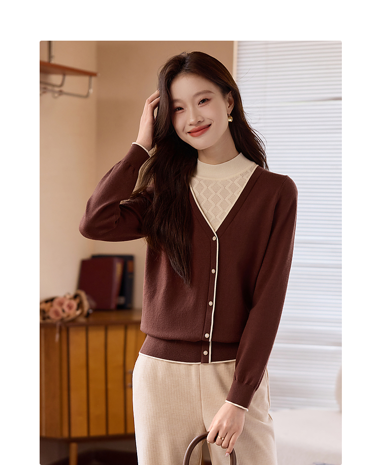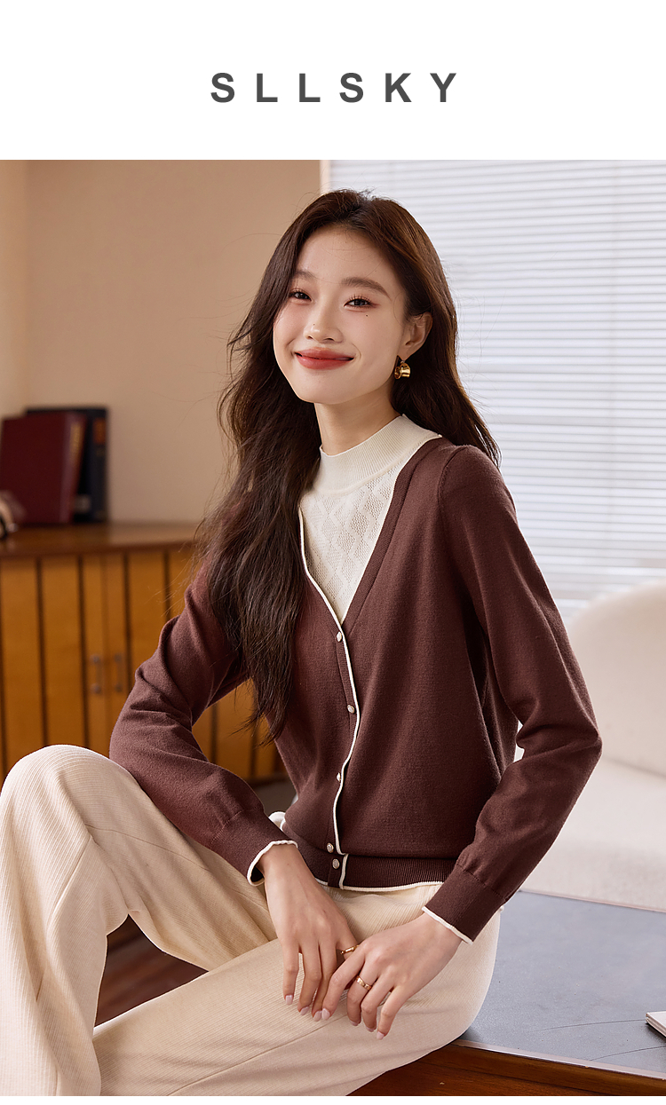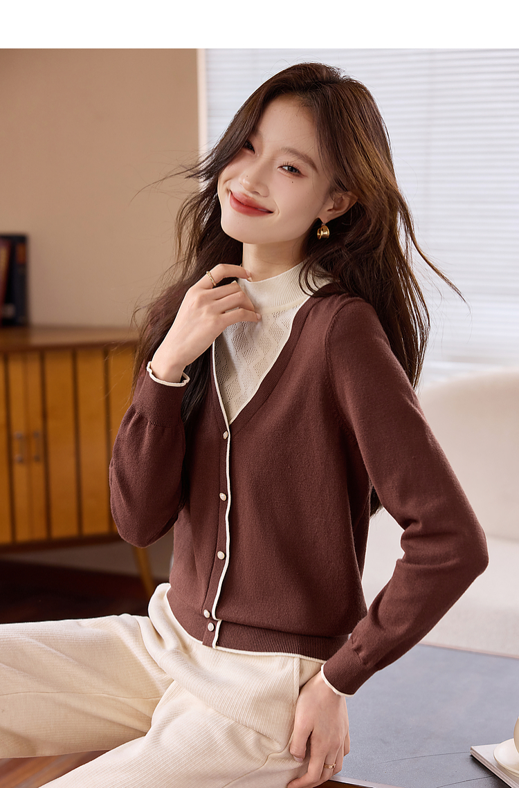 【年终特卖】熙世界2025秋冬新款半高领假两件打底毛衣女设计感小众针织衫上衣