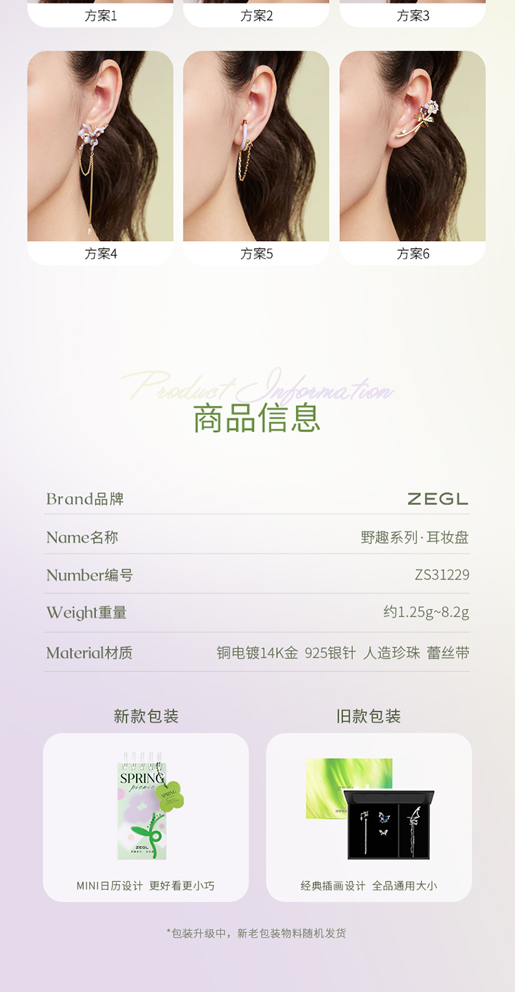ZEGL设计师野趣系列耳妆盘妆容配饰耳夹女无耳洞耳骨夹夏天耳饰品