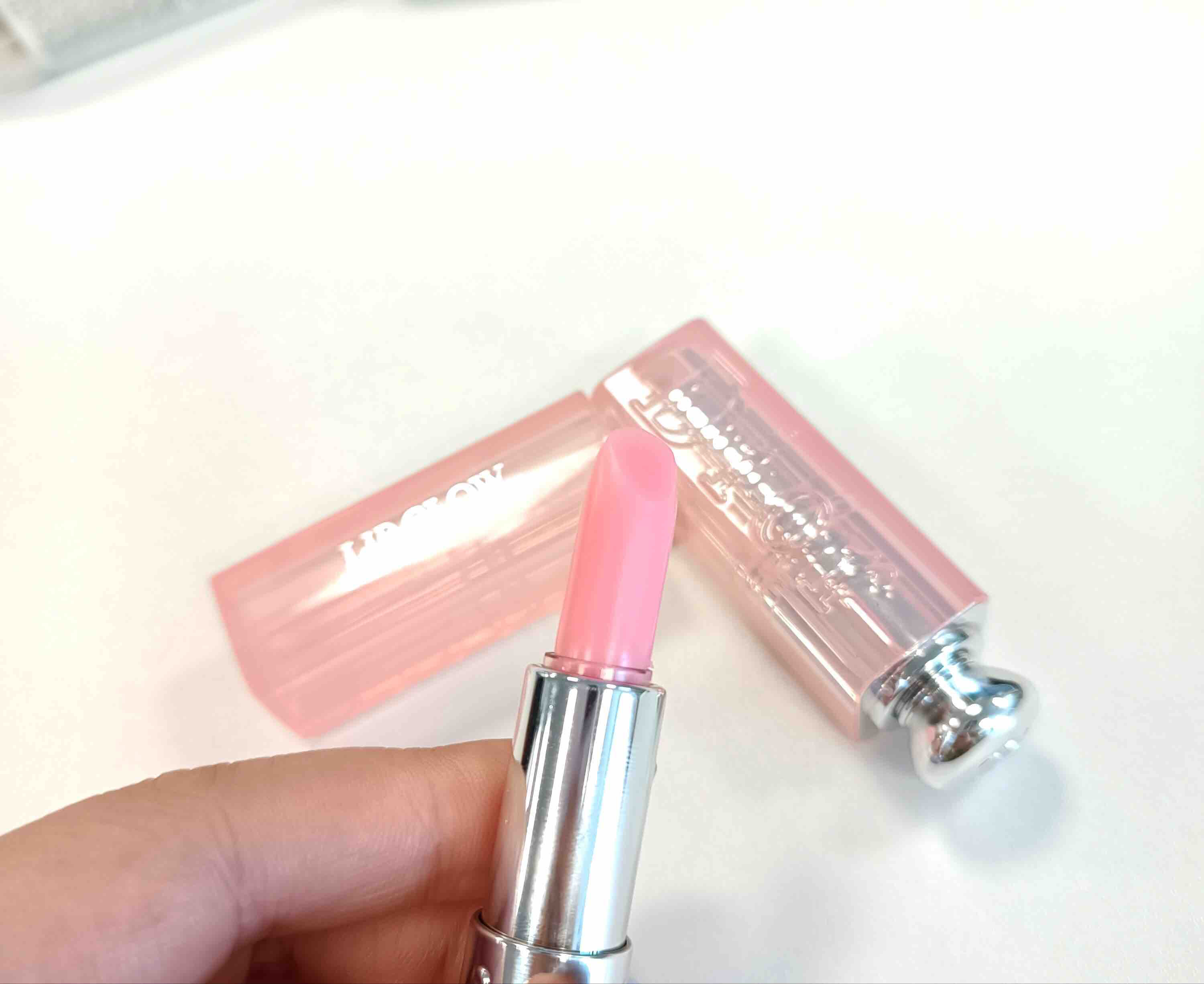 这两支DIOR的变色唇膏膏体、颜色偏浅,质地非常的润,所以用它补妆也非常合适。或者在涂抹口红之前叠加这款唇膏,涂口红时更加顺滑,不卡纹也不会影响口红本身的颜色。