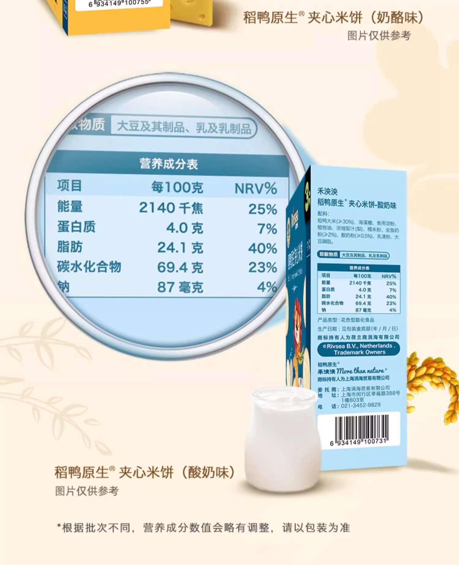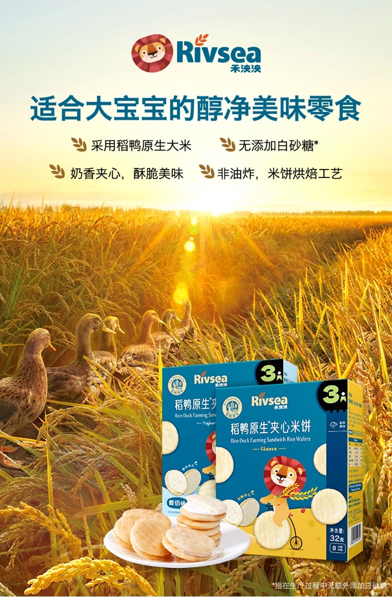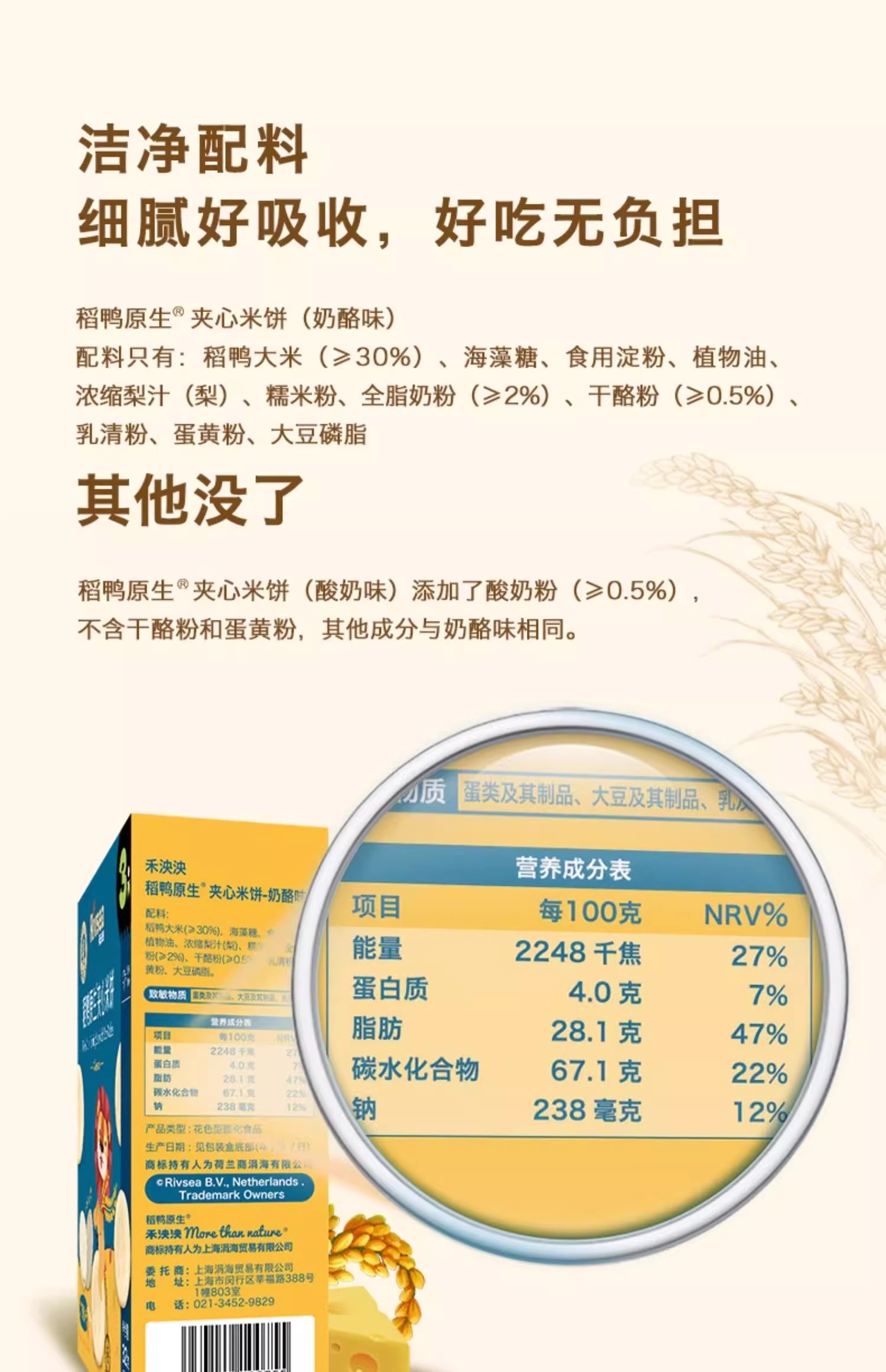 禾泱泱稻鸭原生夹心米饼32g/盒