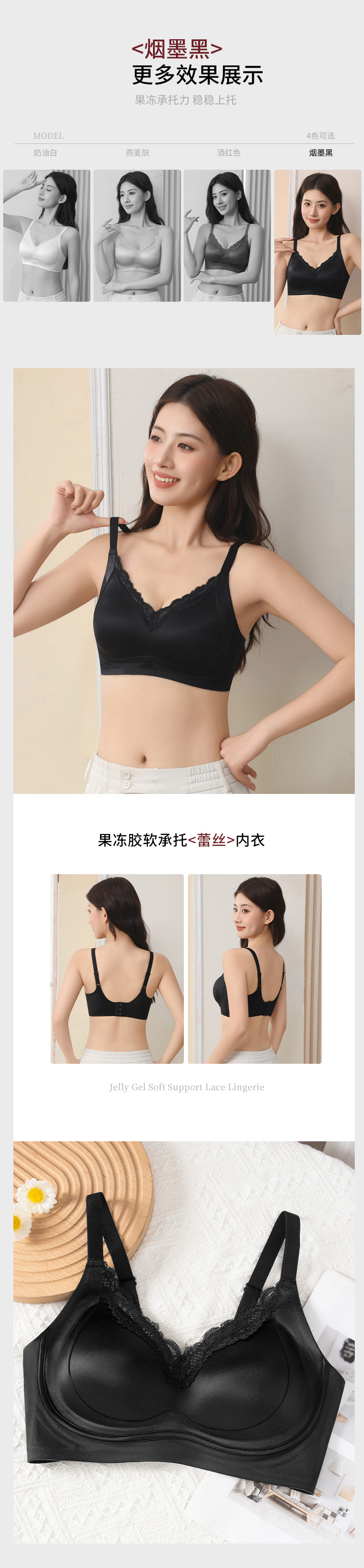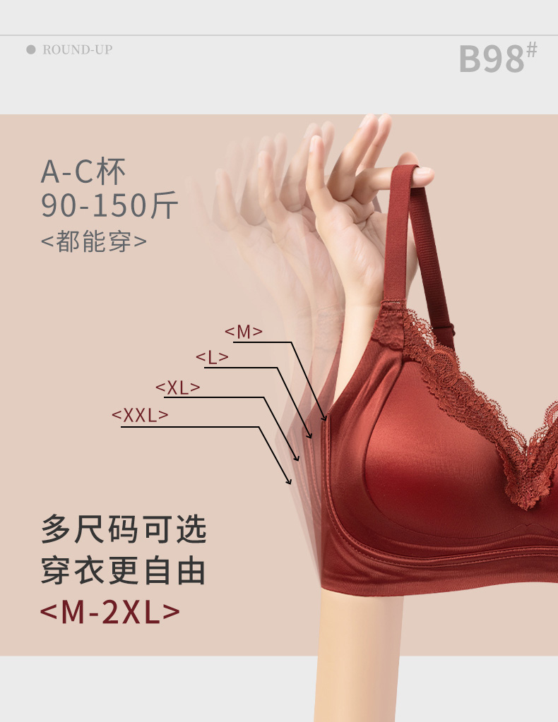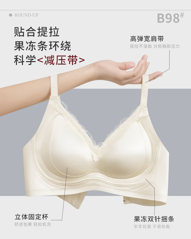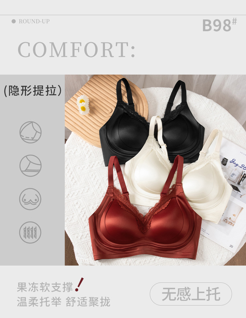 【限时秒杀35元1件】鎏金锻面果冻胶软承托蕾丝内衣-B98