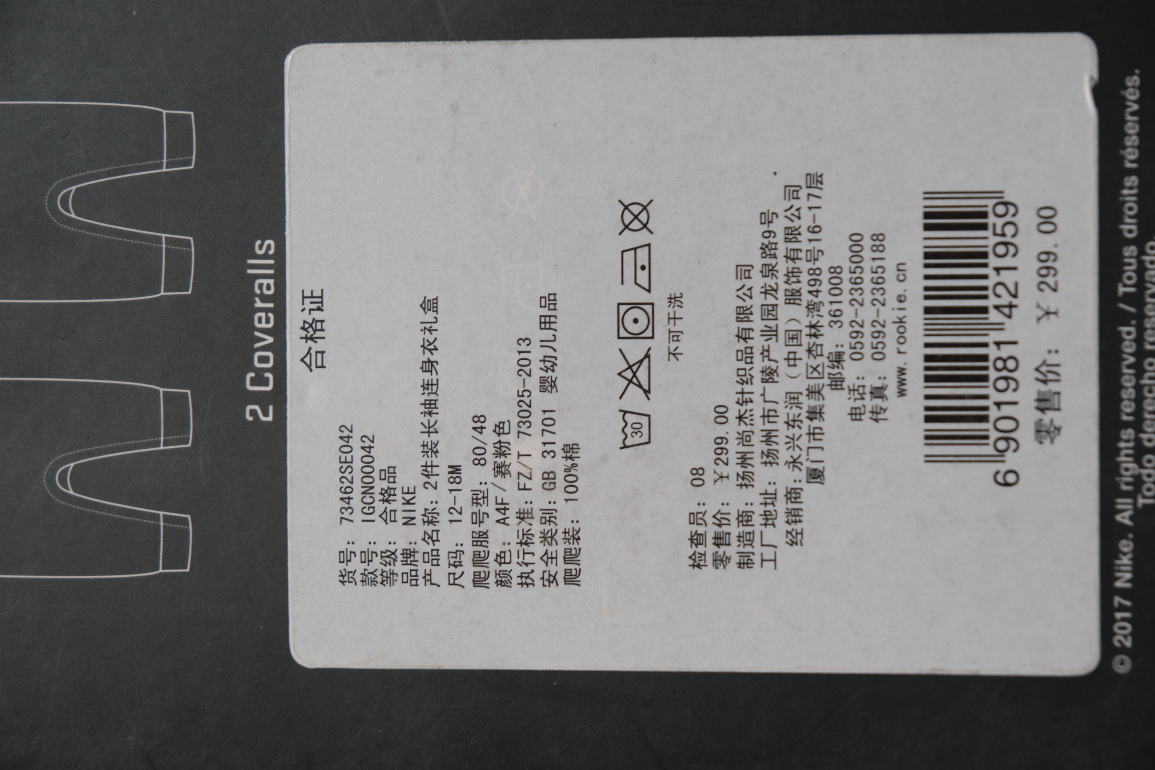 耐克-童衣类(秋)A7NIKE YA3女2件装长袖连身衣礼盒赛粉