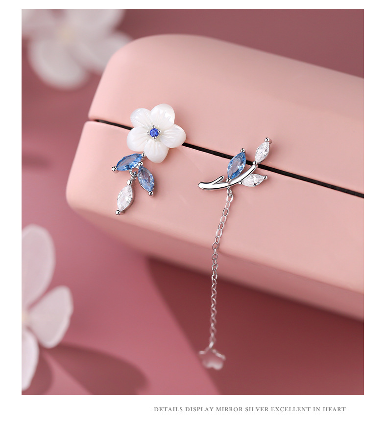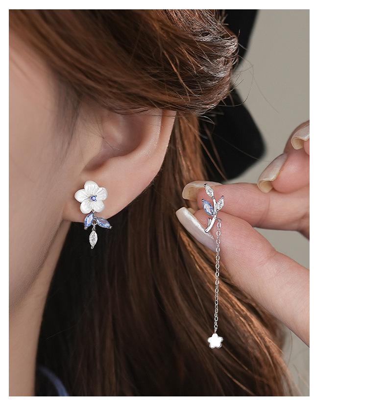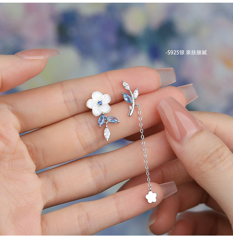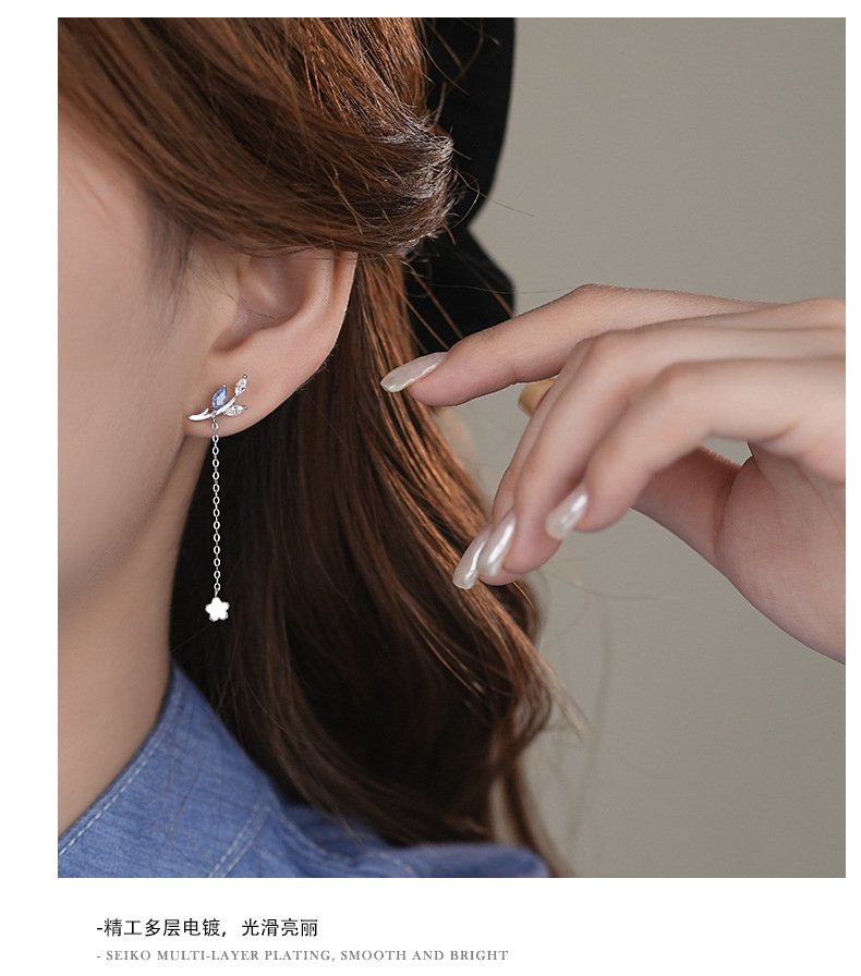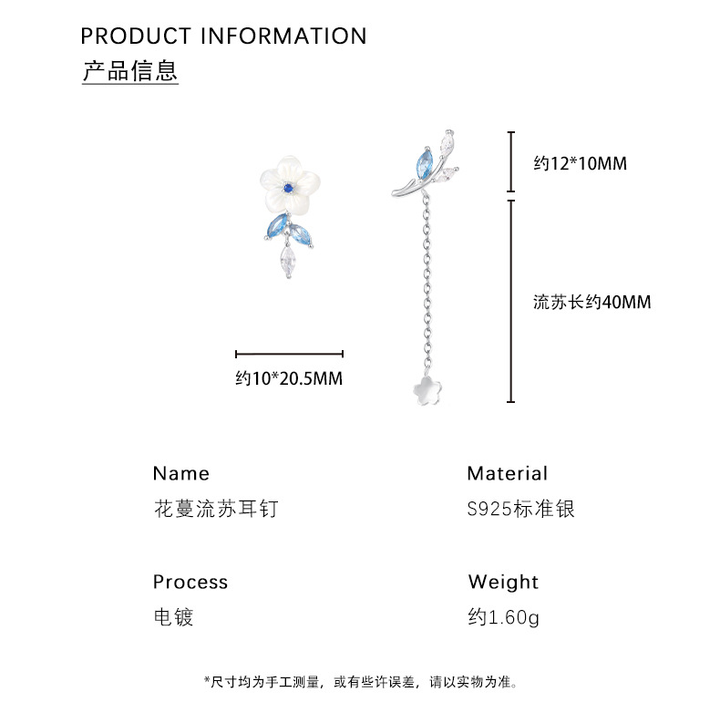 【浅蓝花语】S925纯银不对称流苏耳钉【YXS-E2427】 商品图4