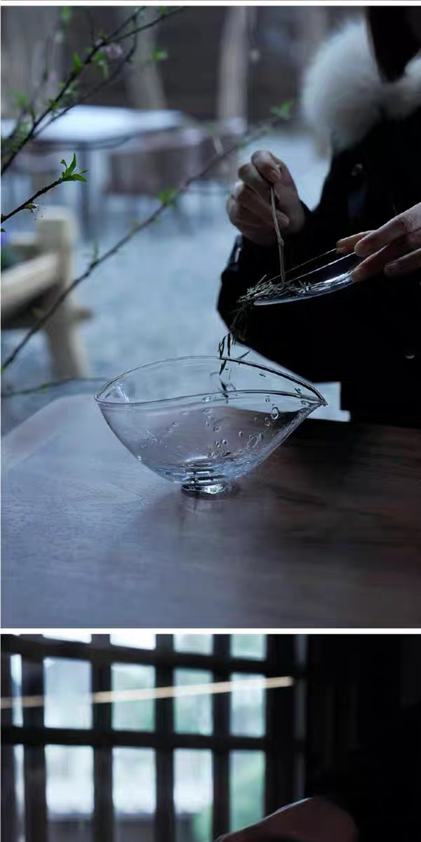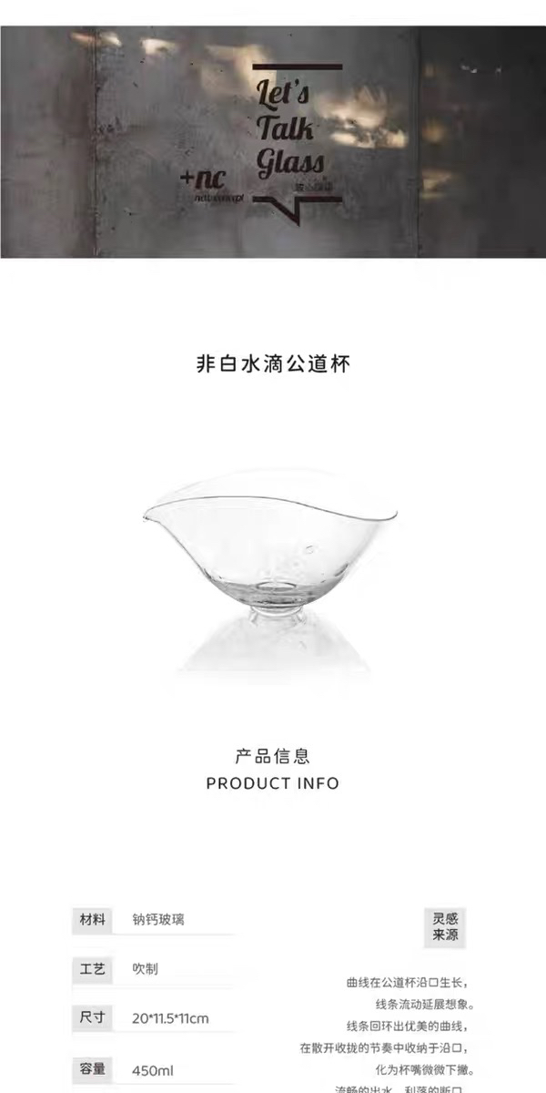 玻心璃语 | 非白水滴公道杯 绿茶 玻璃 原创设计 茶具 手工匠人