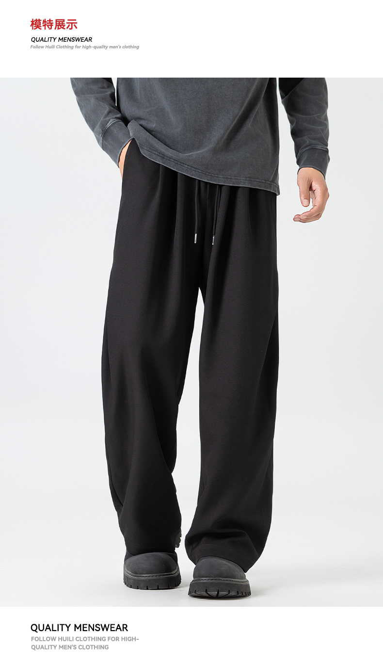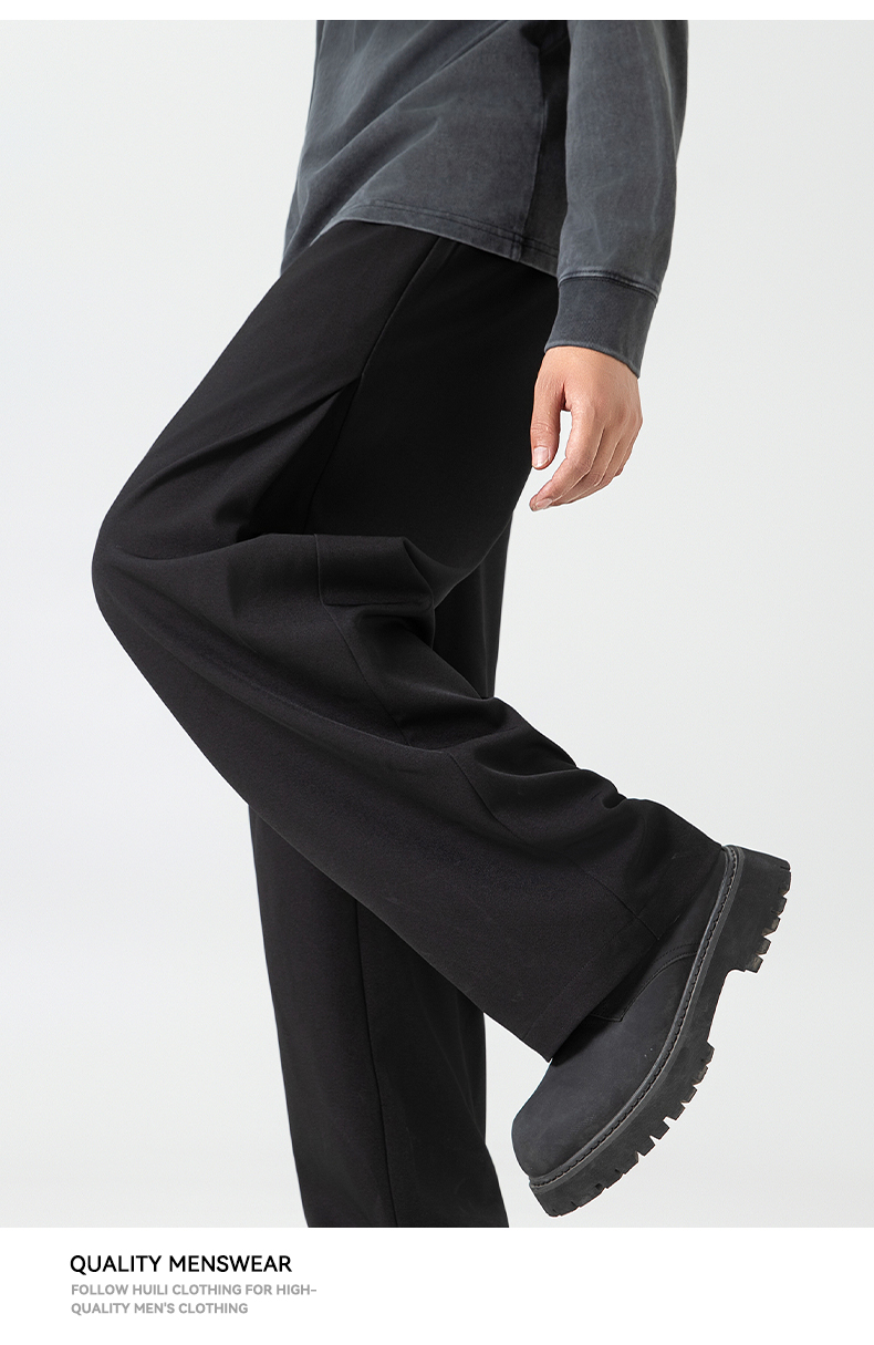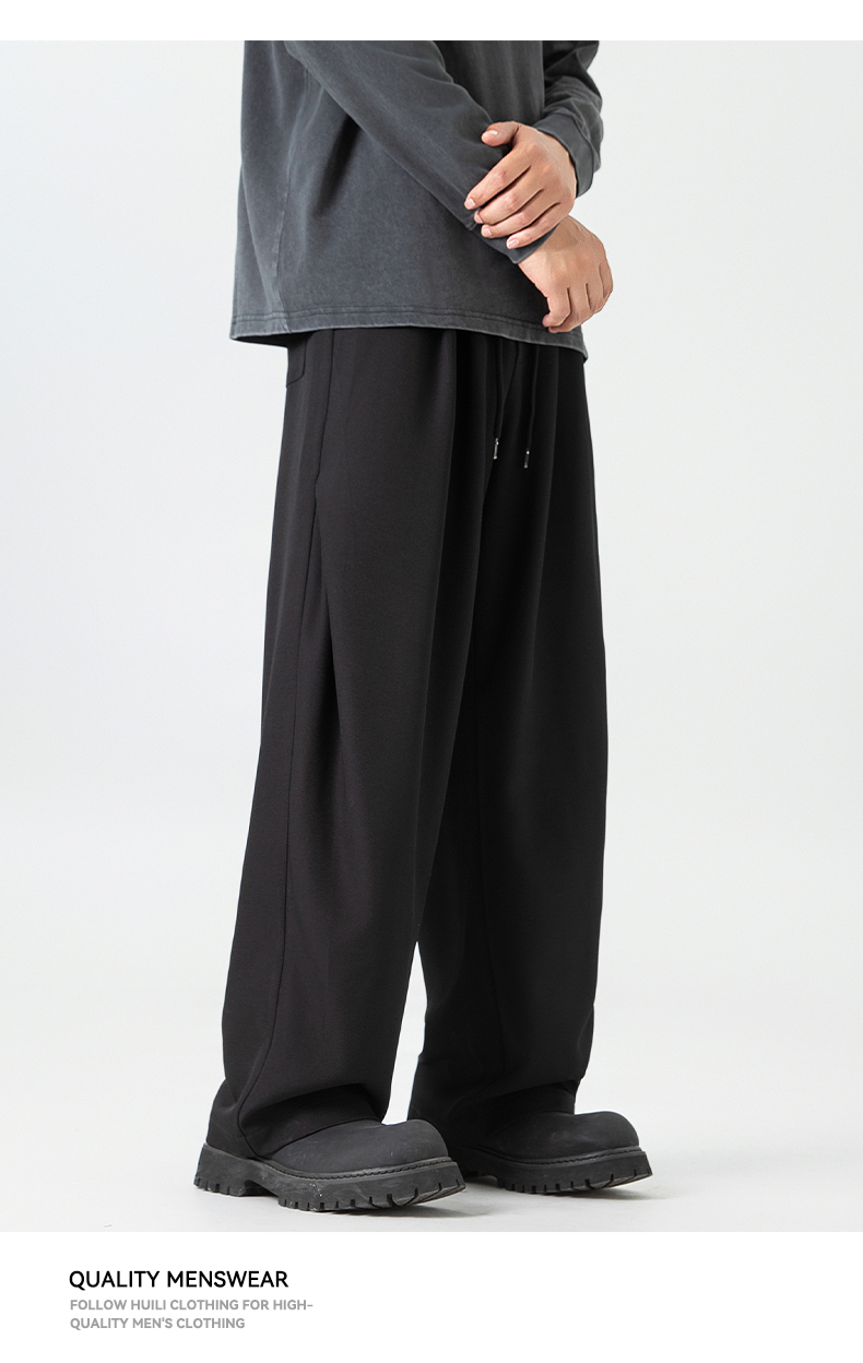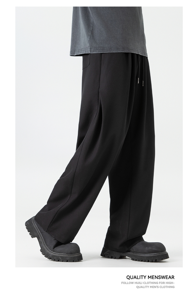 回力美式黑色垂感西裤男秋季新款宽松cleanfit直筒阔腿休闲长裤子