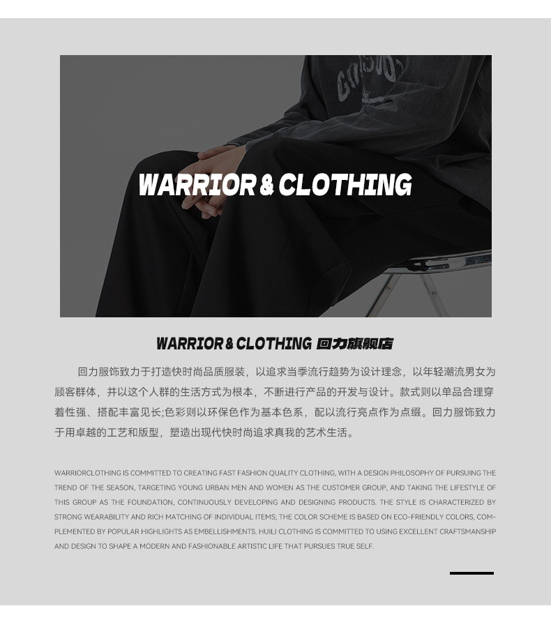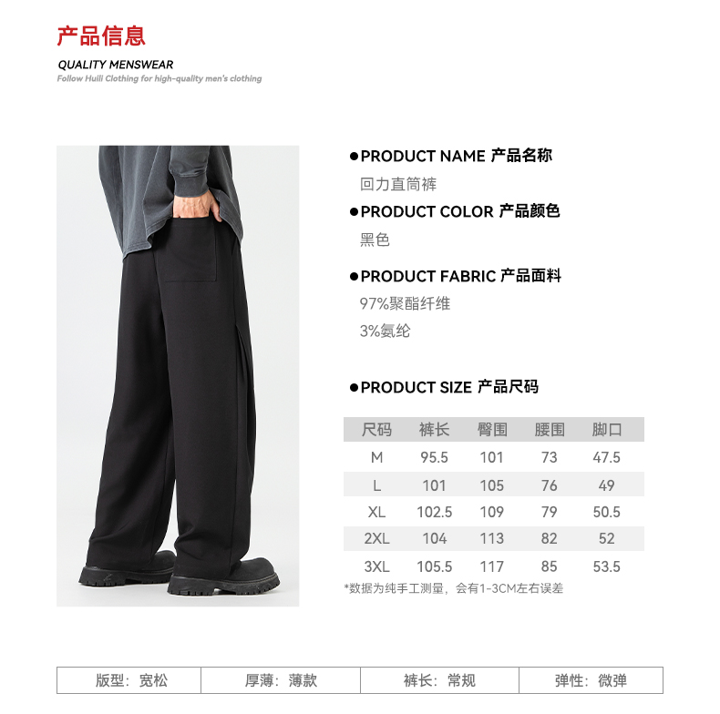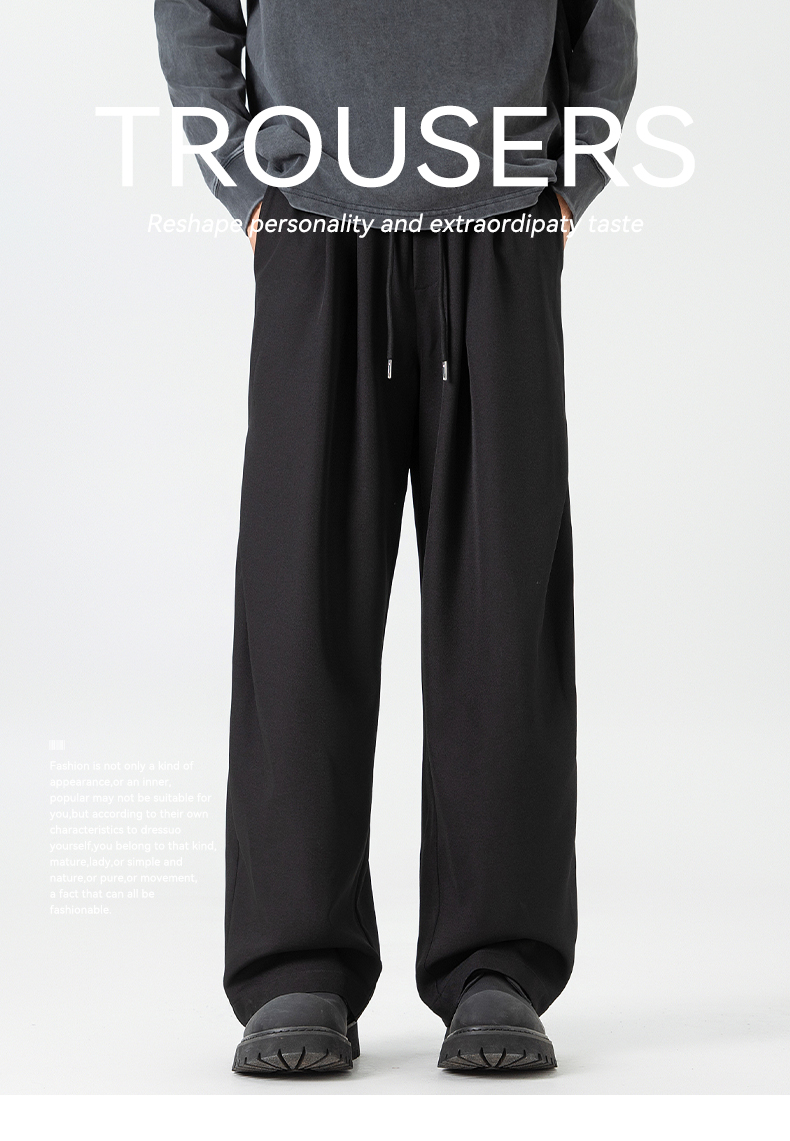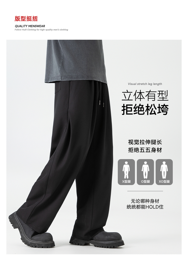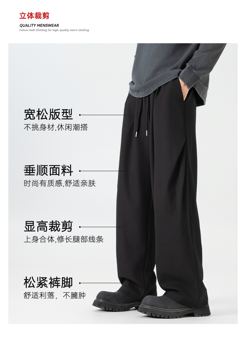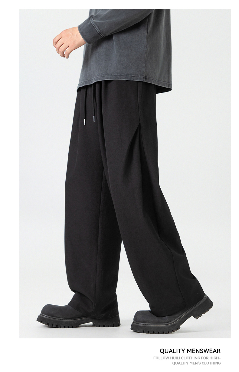回力美式黑色垂感西裤男秋季新款宽松cleanfit直筒阔腿休闲长裤子