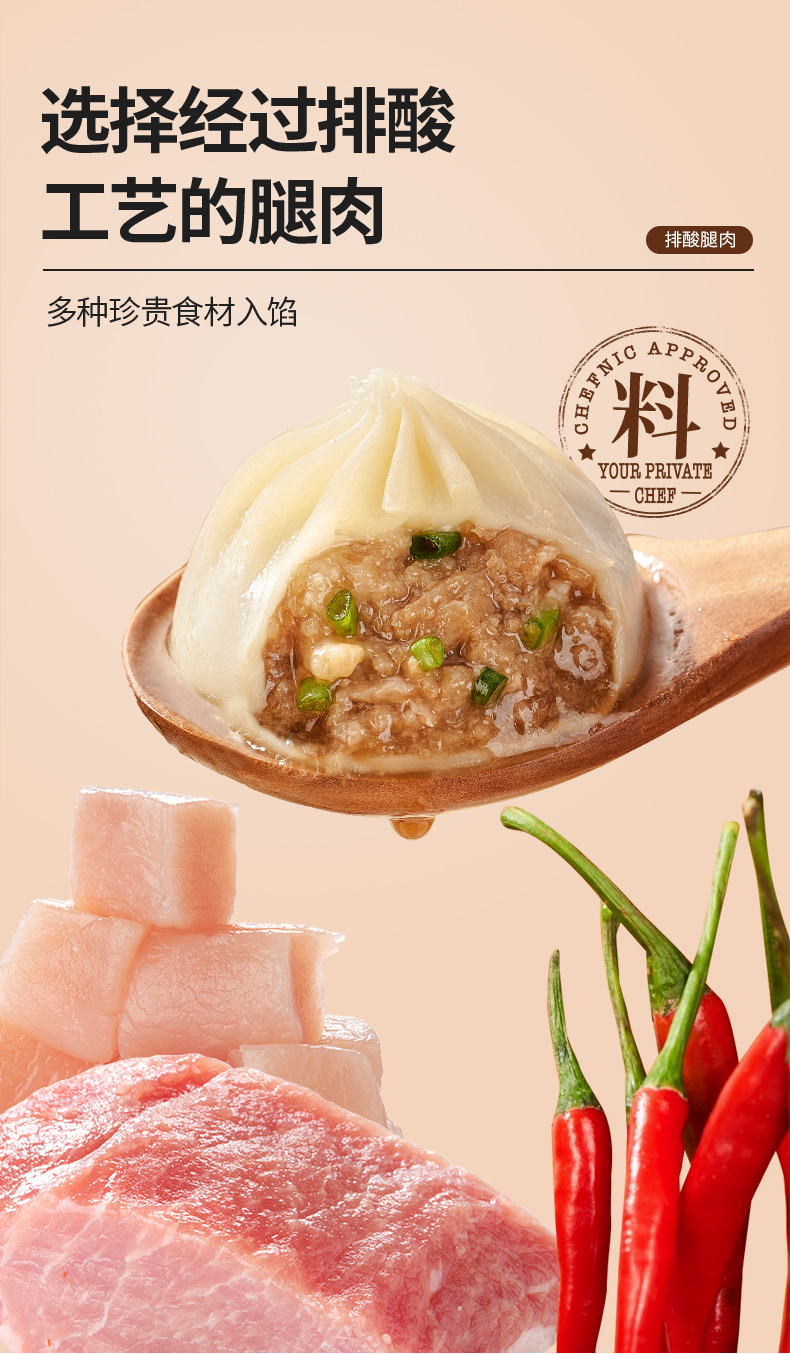 优选猪腿肉,肥瘦黄金比,葱姜原汁调味;