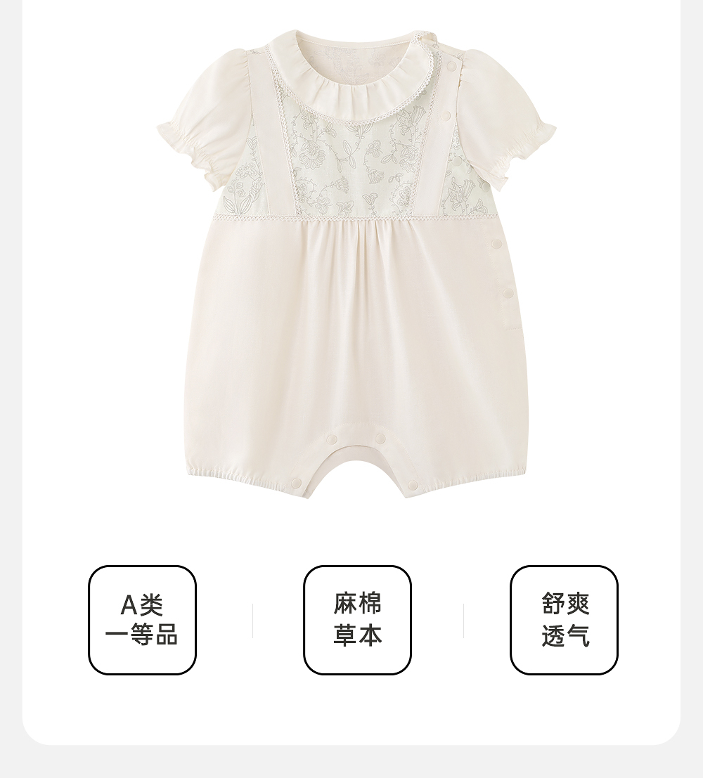 英氏婴儿衣服夏季棉麻女宝短袖连体衣2025新款包屁衣YRHBJ2R026A
