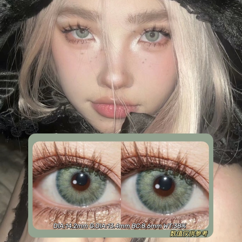 Hushlens年抛·诺曼底蓝&布拉格绿·14.2mm(着色参考13.4mm) 0-800度(有525/575) 韩产进口·(建议佩戴6-8个月左右更换)