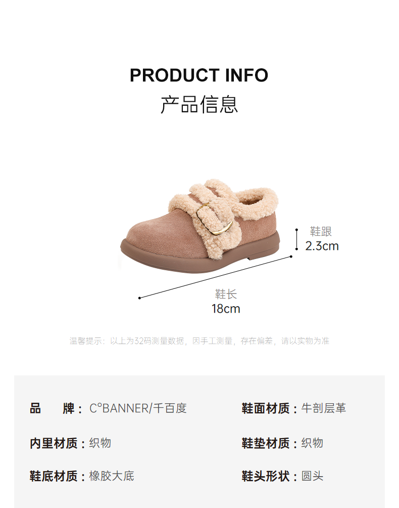千百度冬季雪地靴圆润宽敞鞋头童鞋A25685077