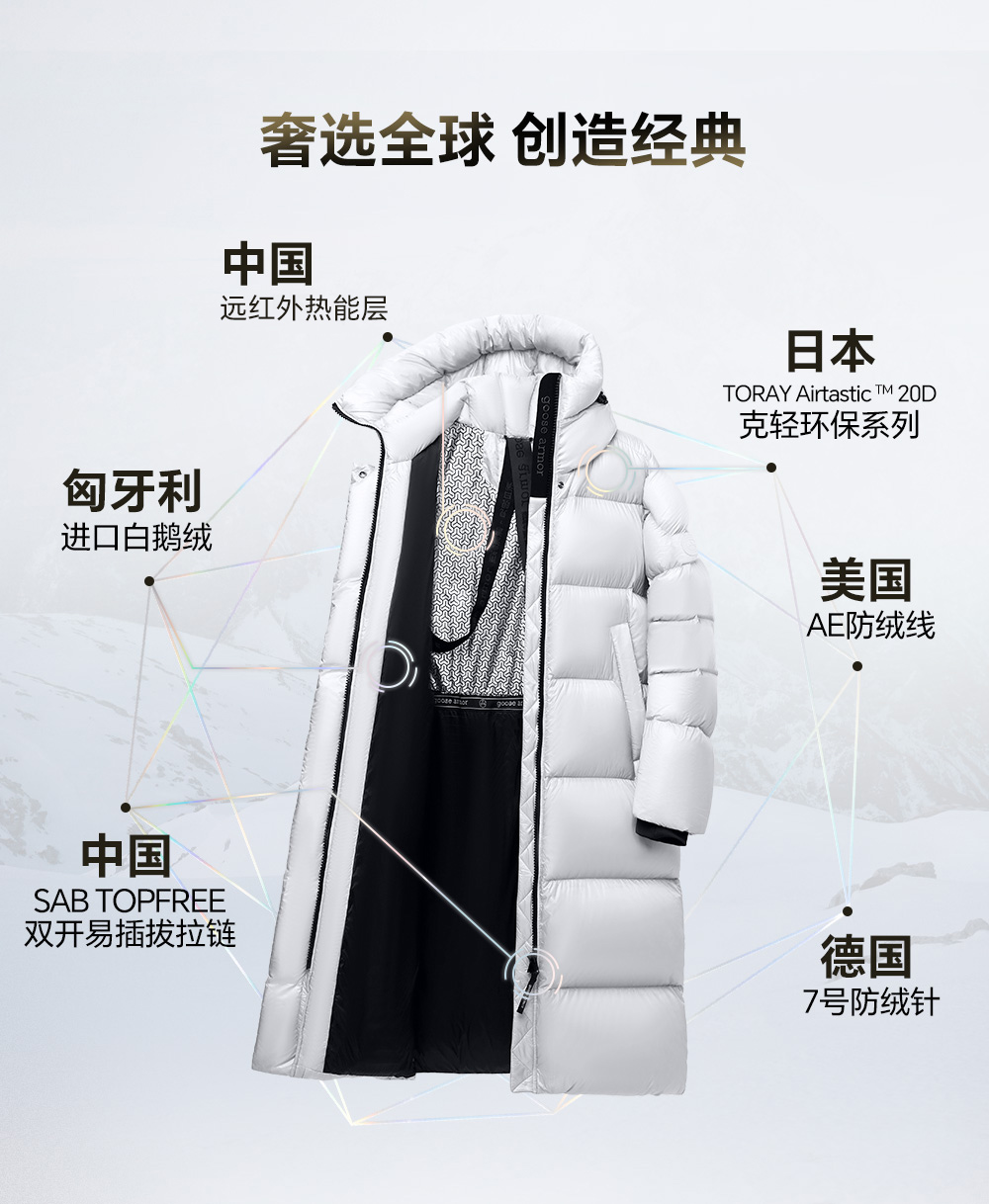天石鹅铠甲700蓬90%白鹅绒羽绒服男士女士长款东北严寒保暖2.0版G305