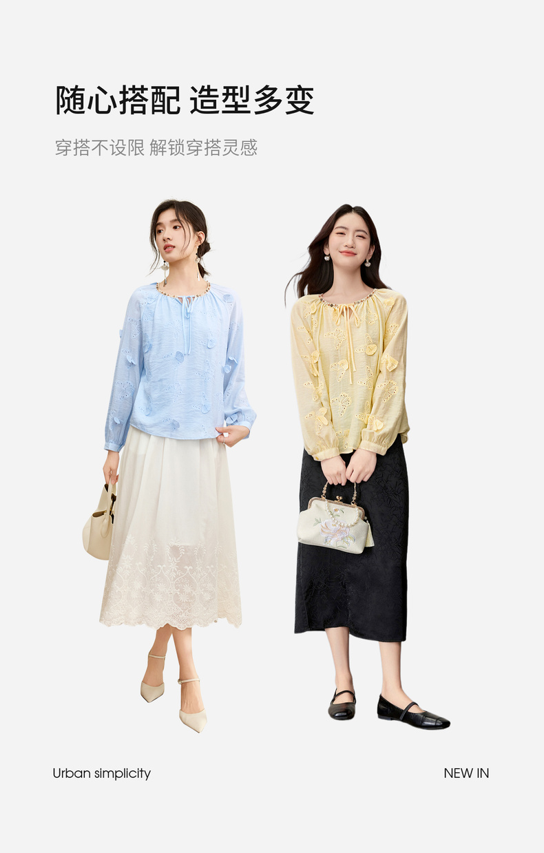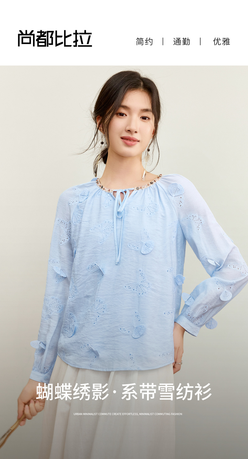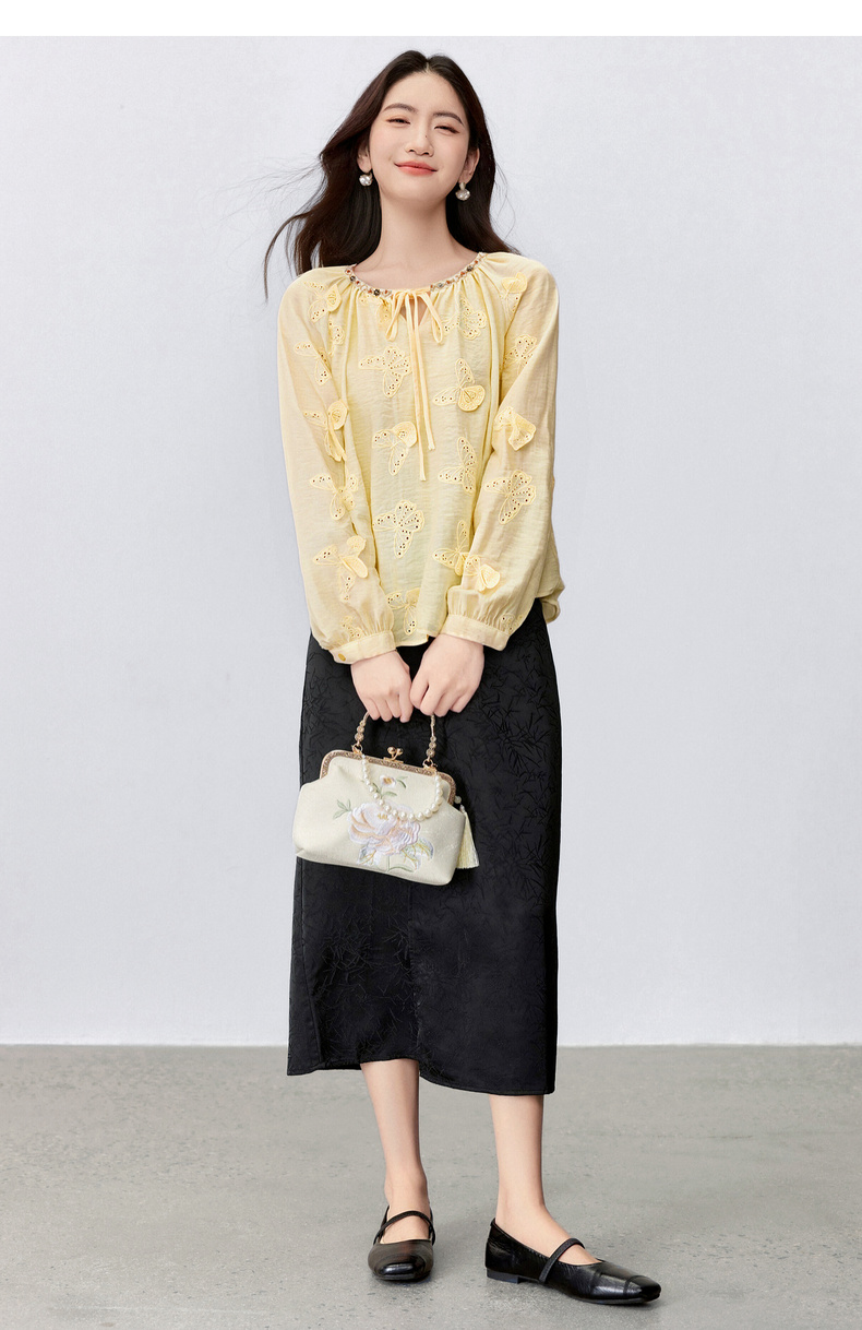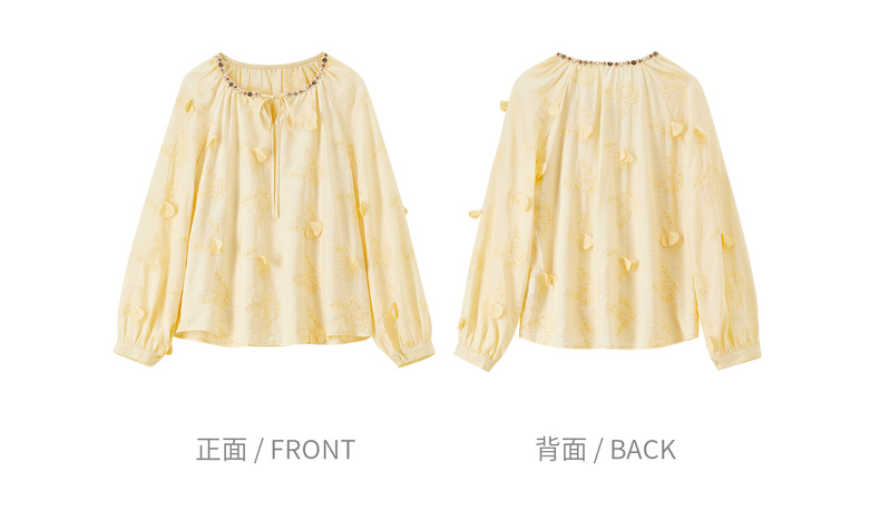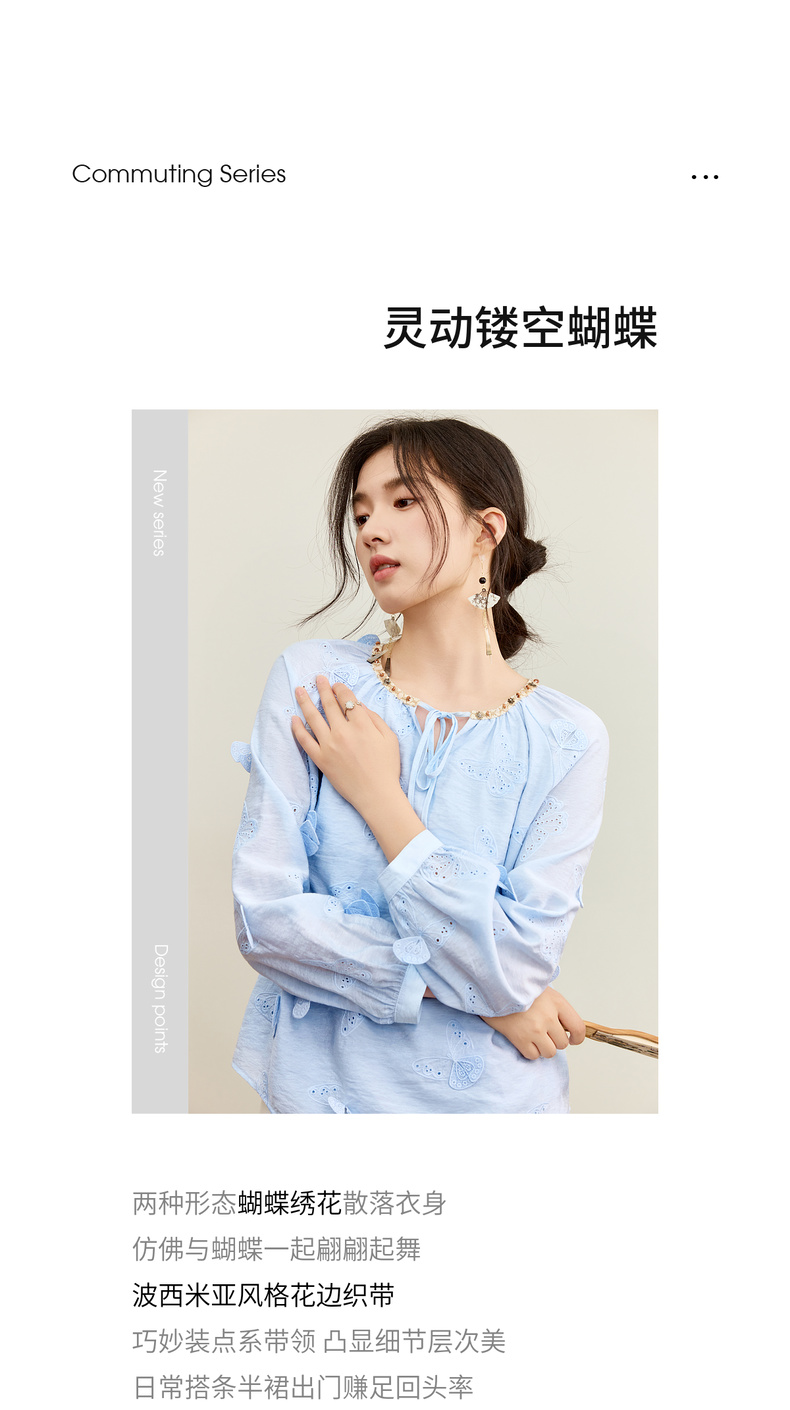 【内购】【灵动蝴蝶】浪漫优雅波西米亚花边系带领插肩袖宽松显瘦雪纺衫-153VA3819
