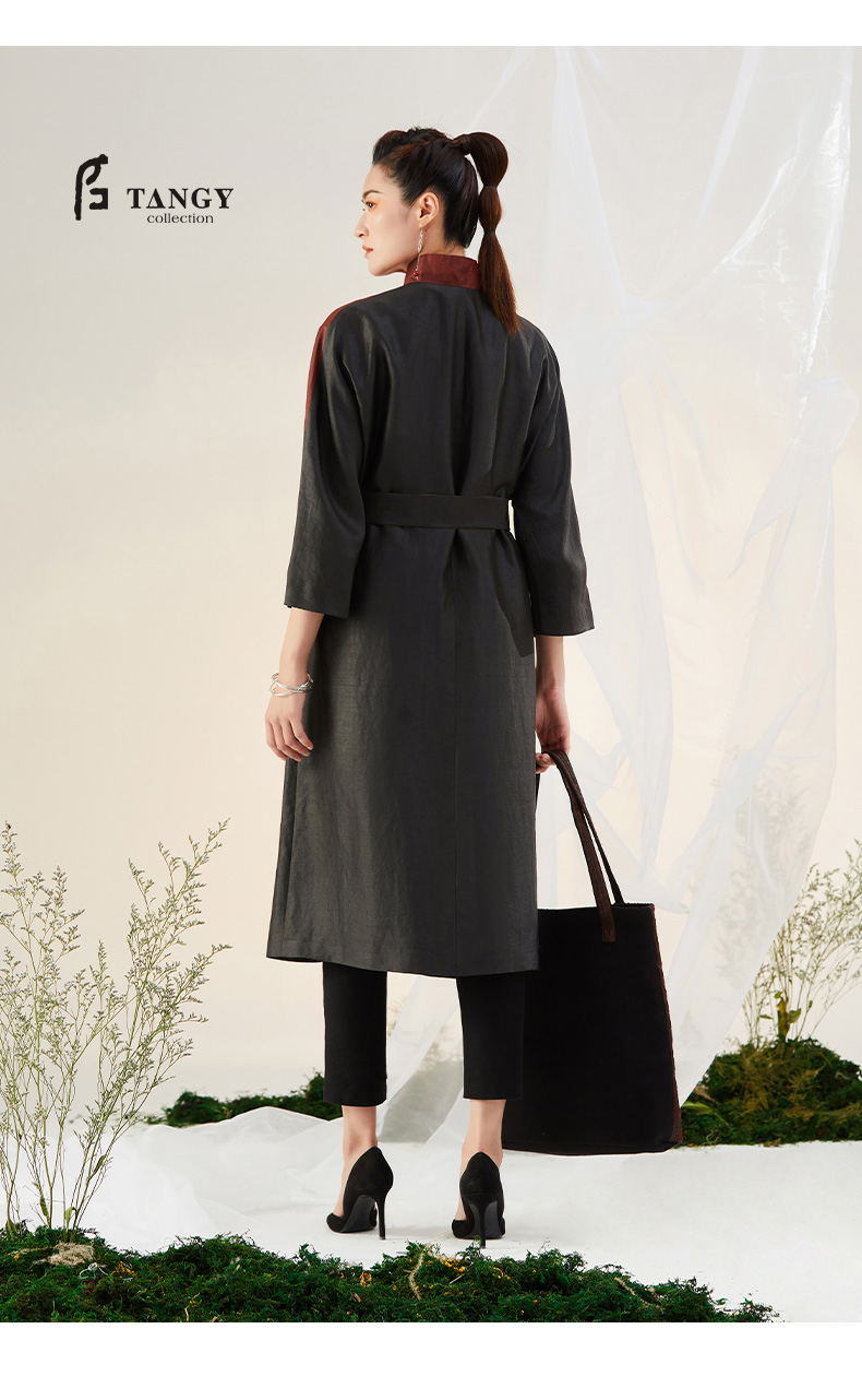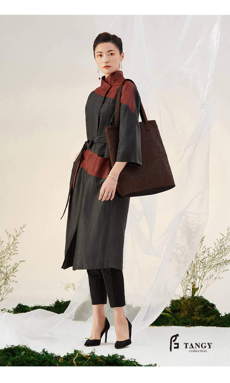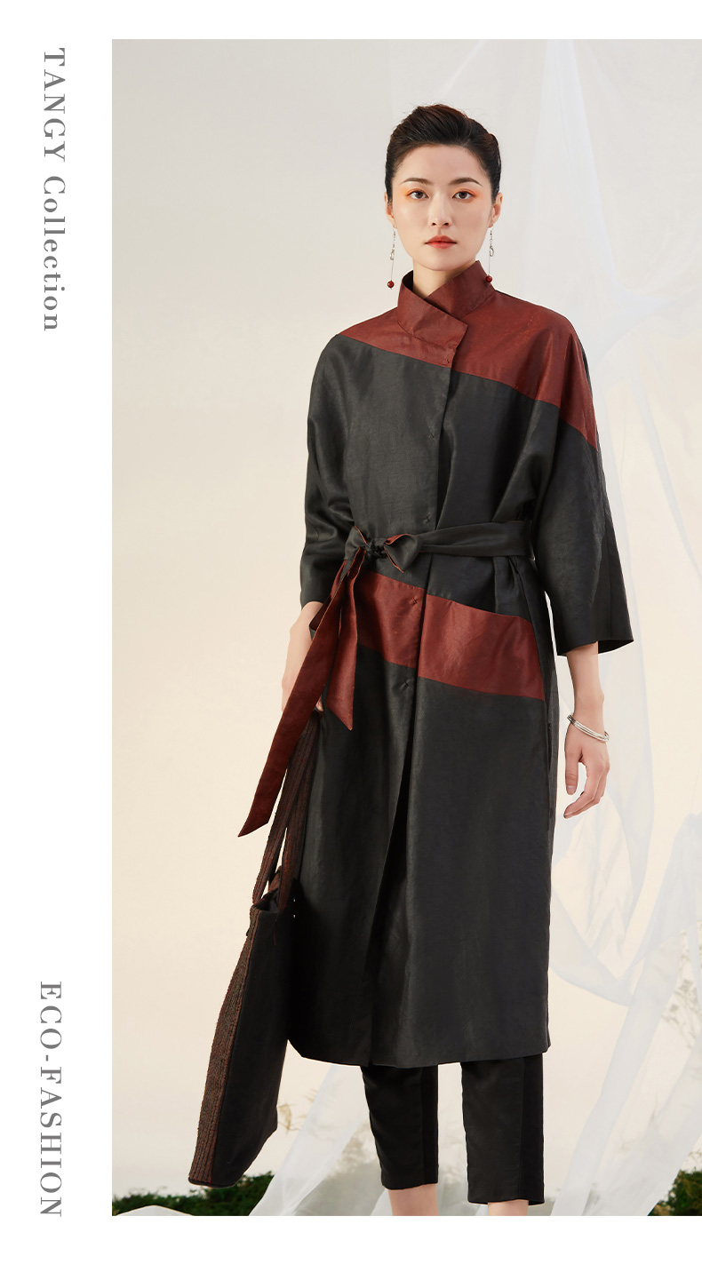 TANGY Collection天意精品2021年秋冬新品真丝拼撞复古莨绸外套