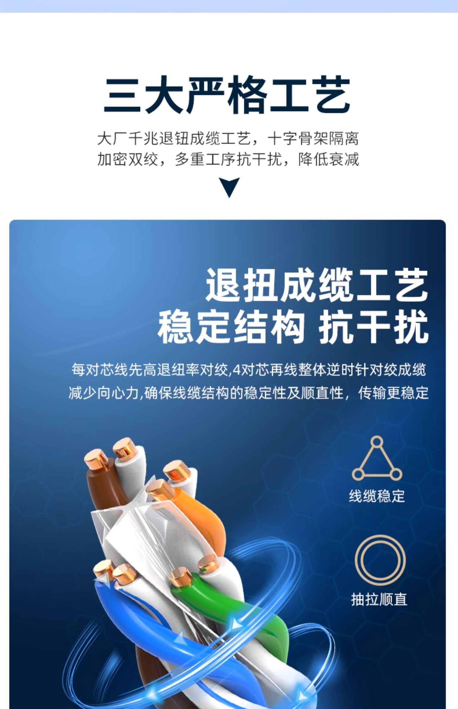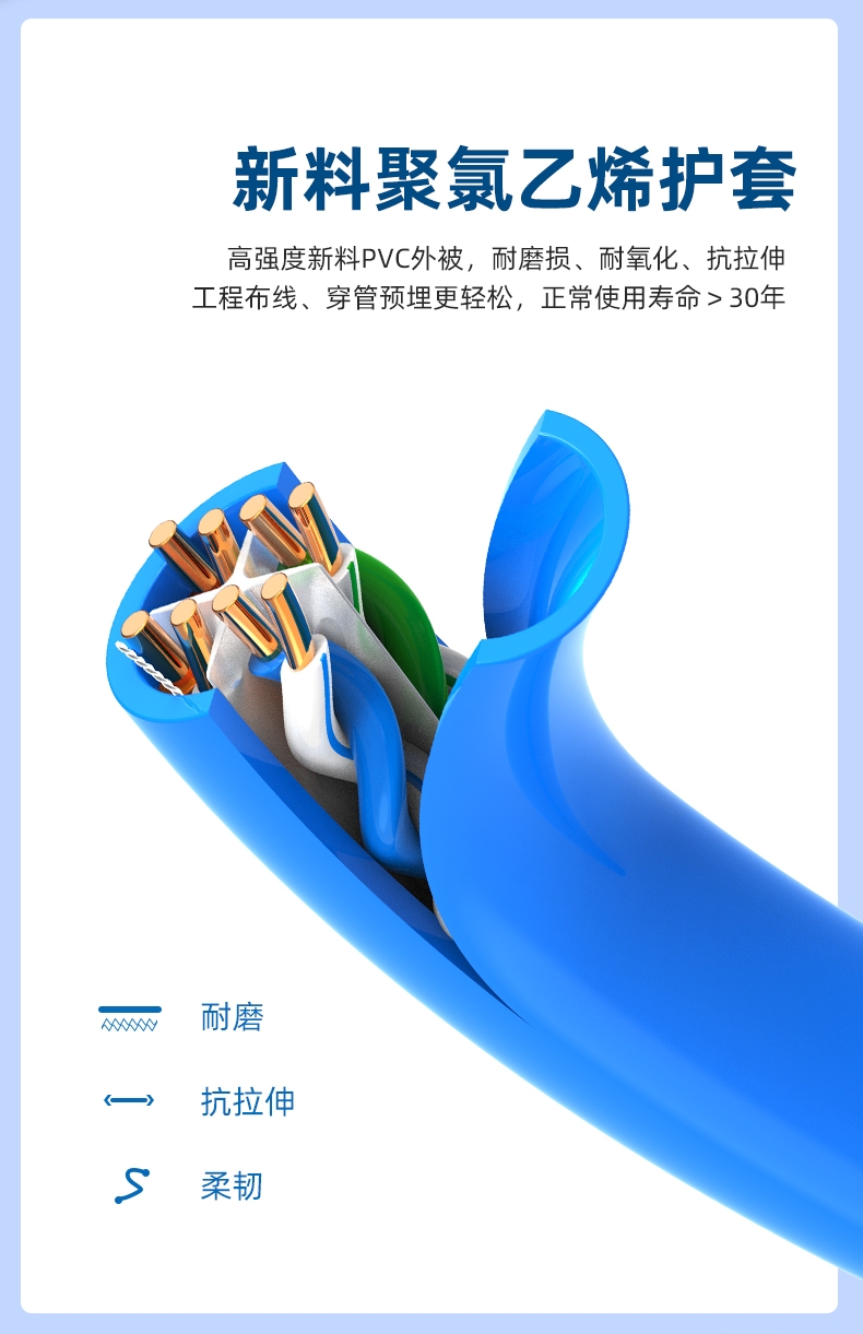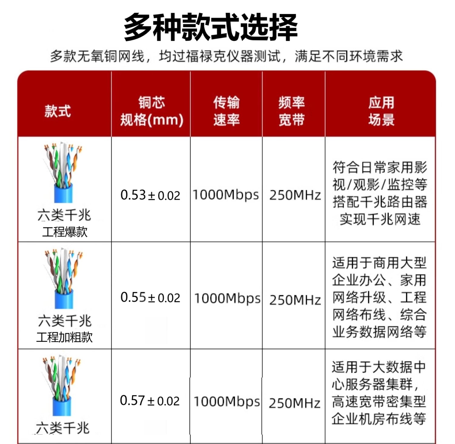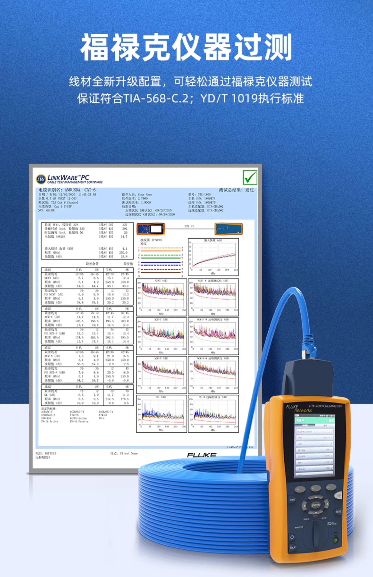 主推@工程包检【过专业网分仪+FLUKE福禄克测试】六类千兆非屏蔽CAT6e UTP4对双绞线POE供电 监控工程传输250米千兆高速传输数据中心机房网络布线一站式采购