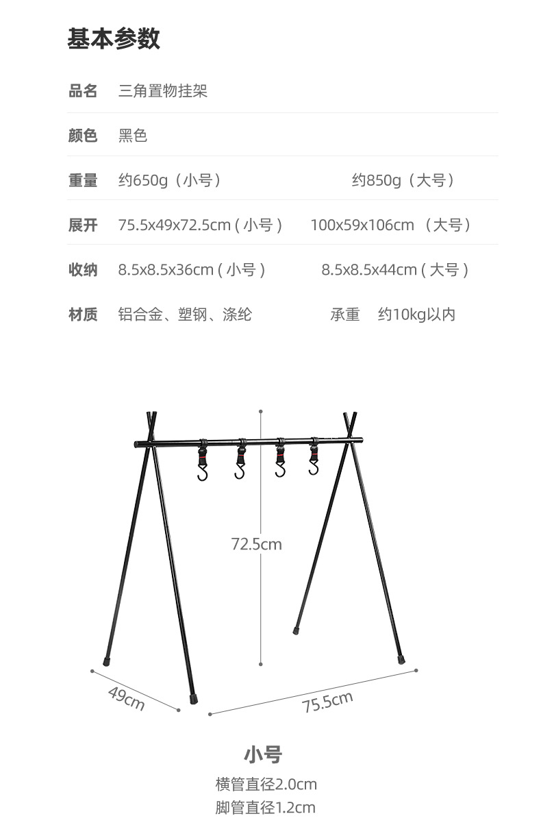 SunnyFeel山扉户外露营折叠置物架铝合金炊具挂架野餐三角支架子