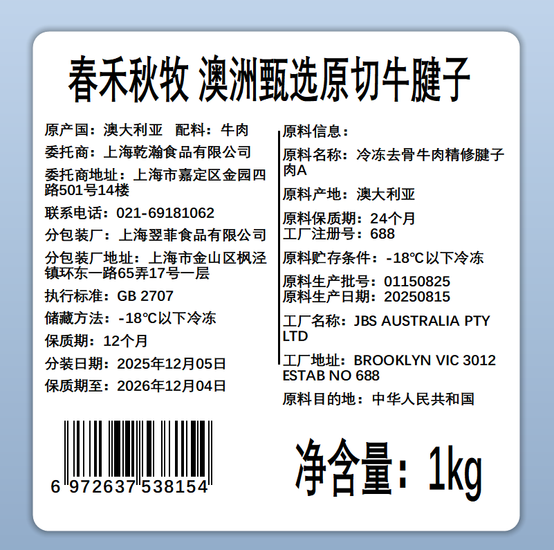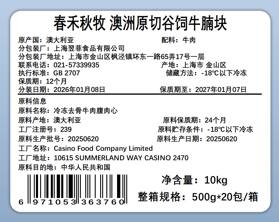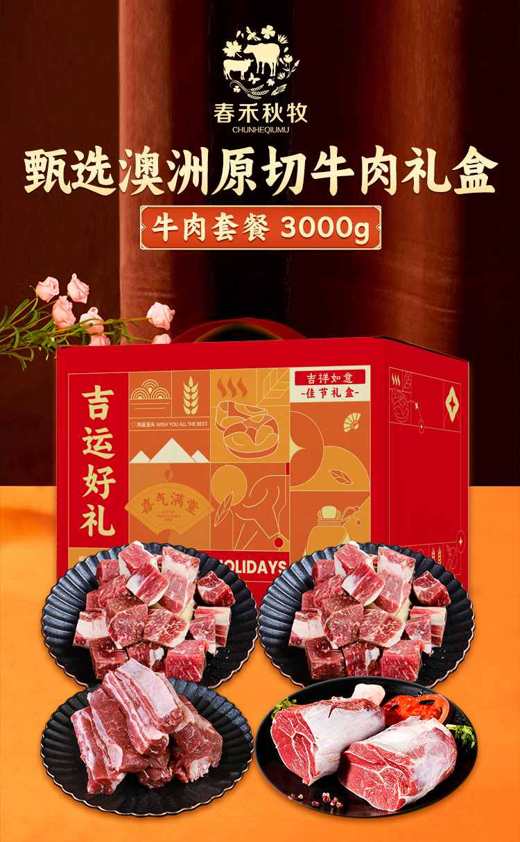 心选丨甄选澳洲牛肉精品礼盒3kg 牛肋条1kg+牛腱子1kg+牛腩500g*2