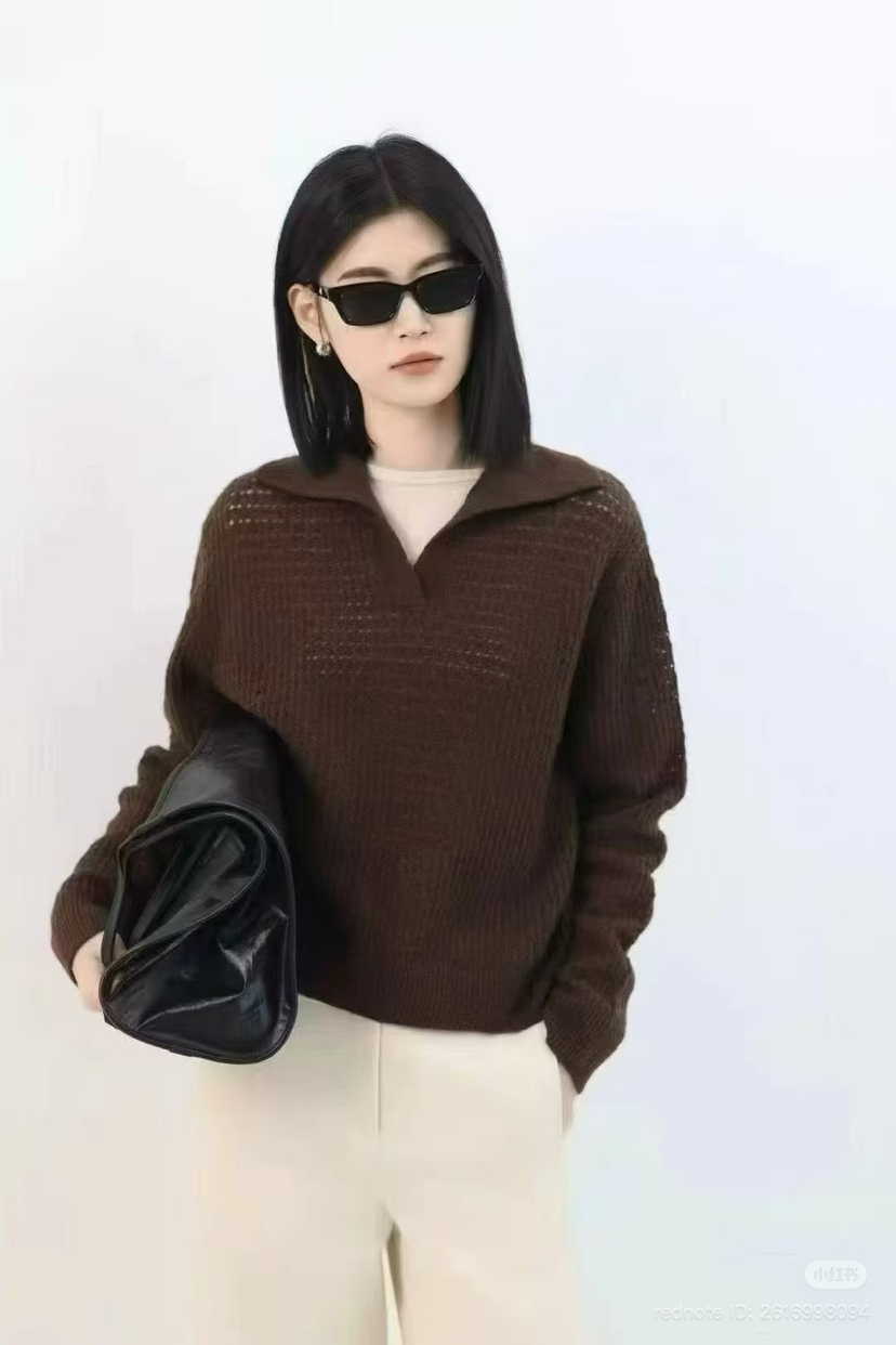初十上新 独家圆正 小禾 牦牛绒 翻领 针织套头衫
