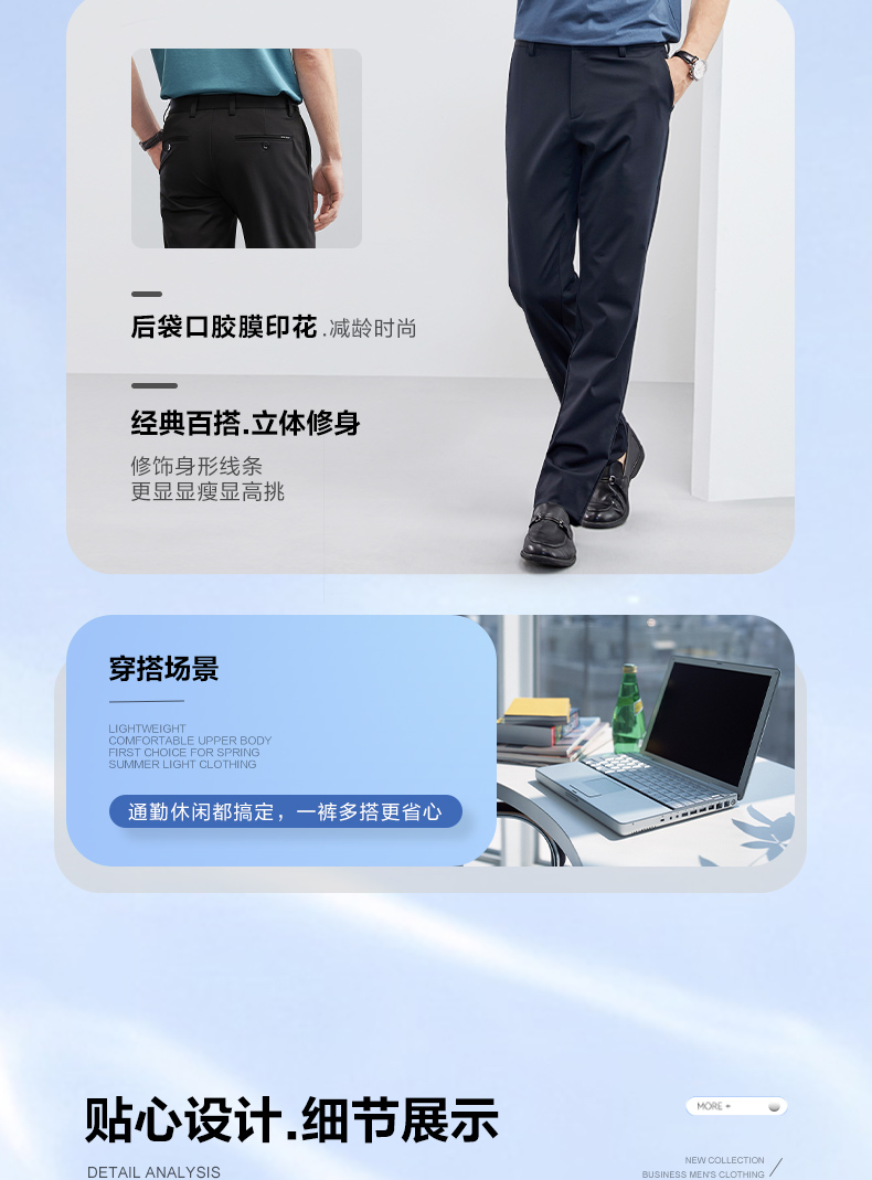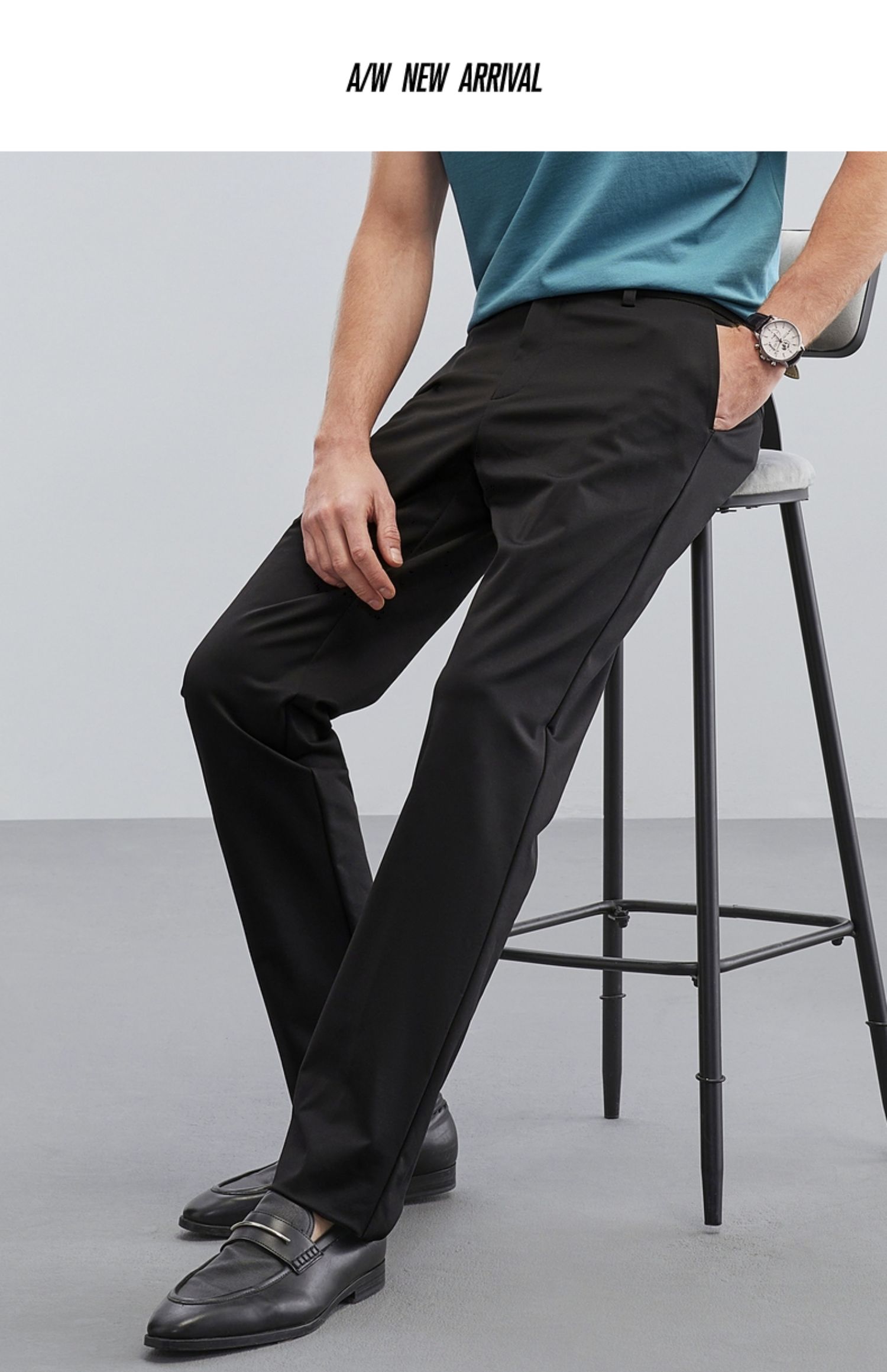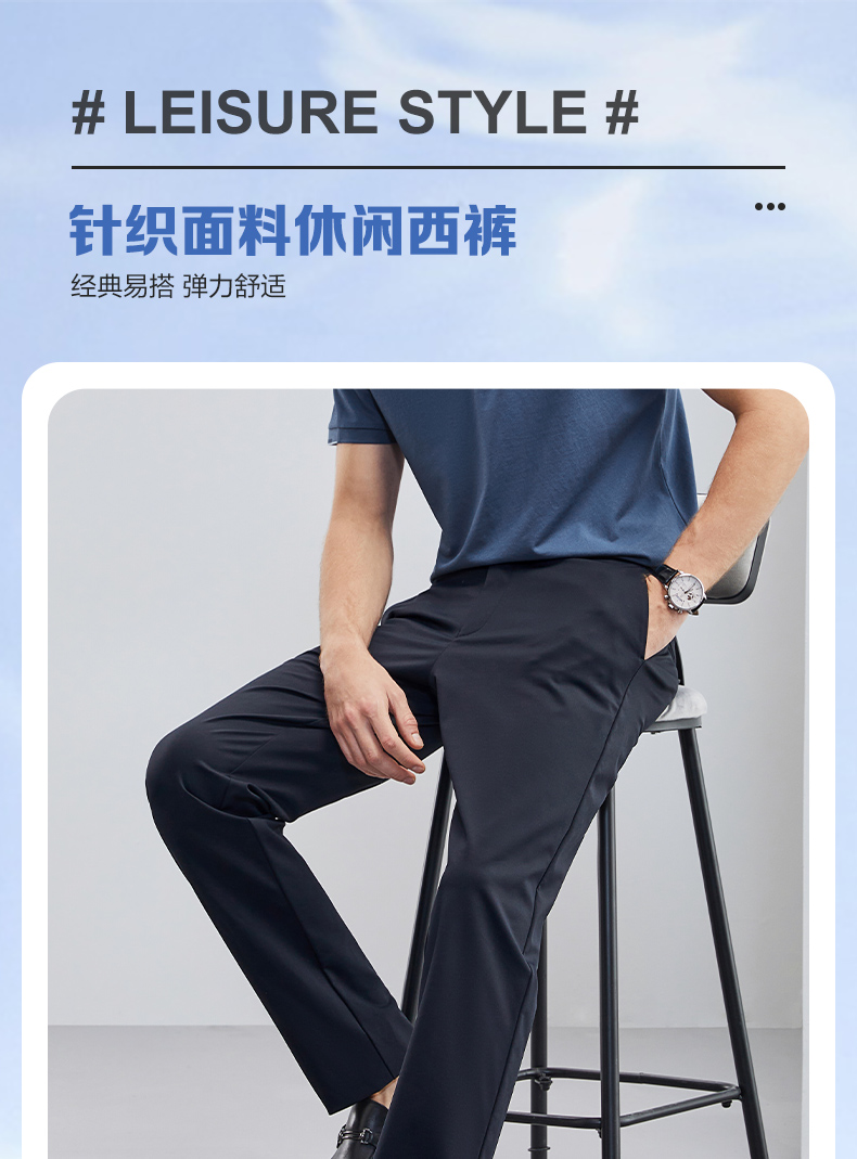 柒牌西服裤子男春夏新款商务休闲中青年针织弹力合体直筒西裤 124H71120
