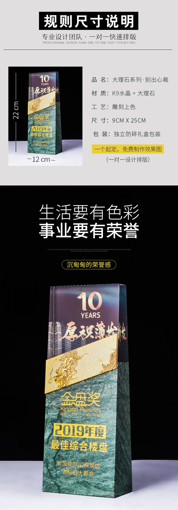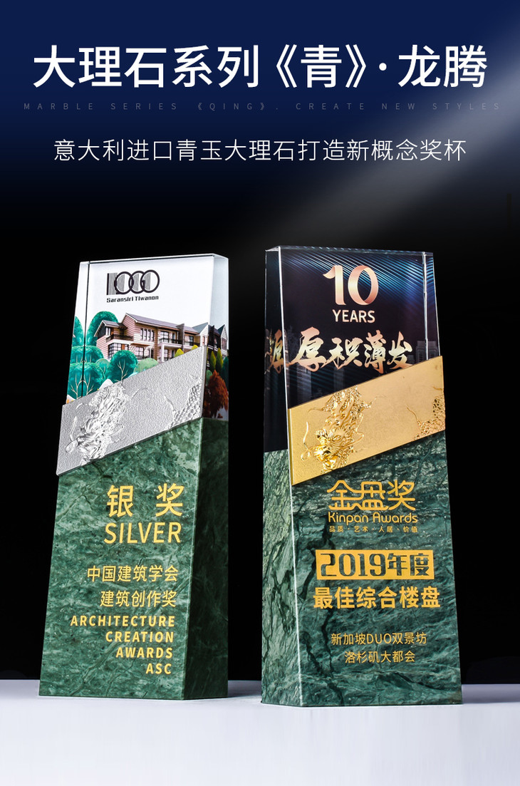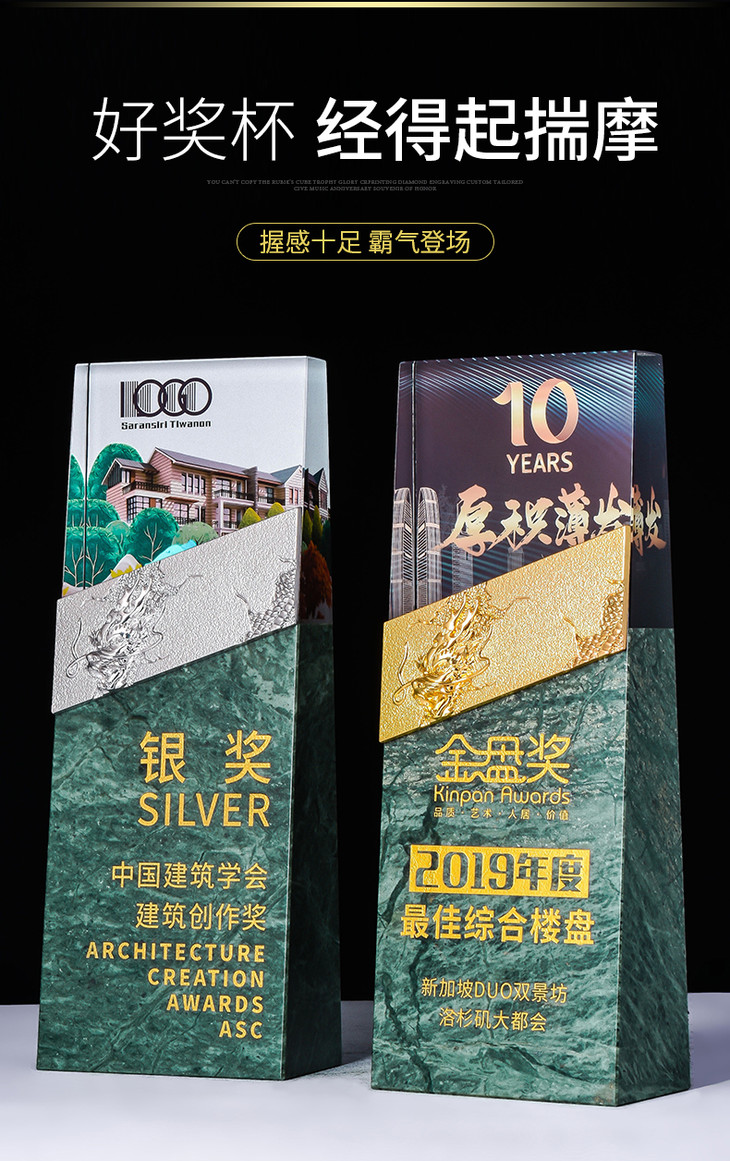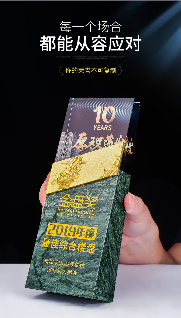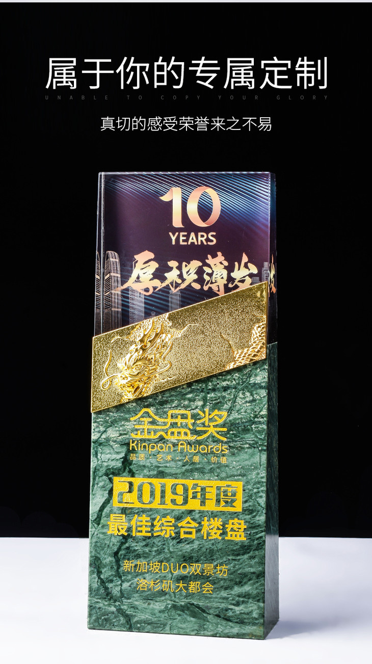 水晶奖杯定制大理石定做龙形金属创意高档荣誉牌匾奖牌刻字制作