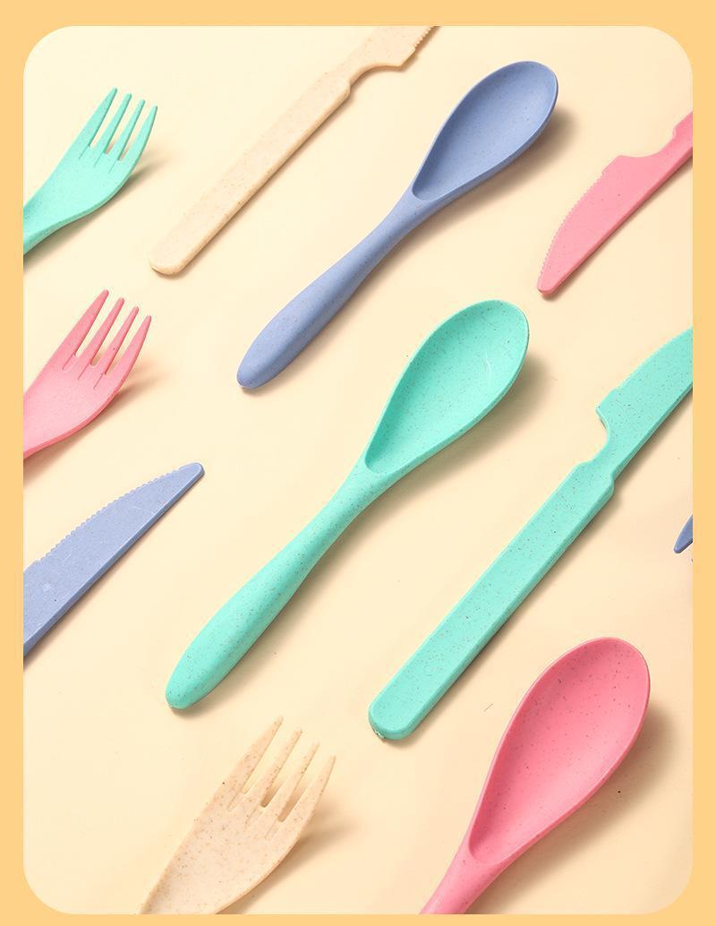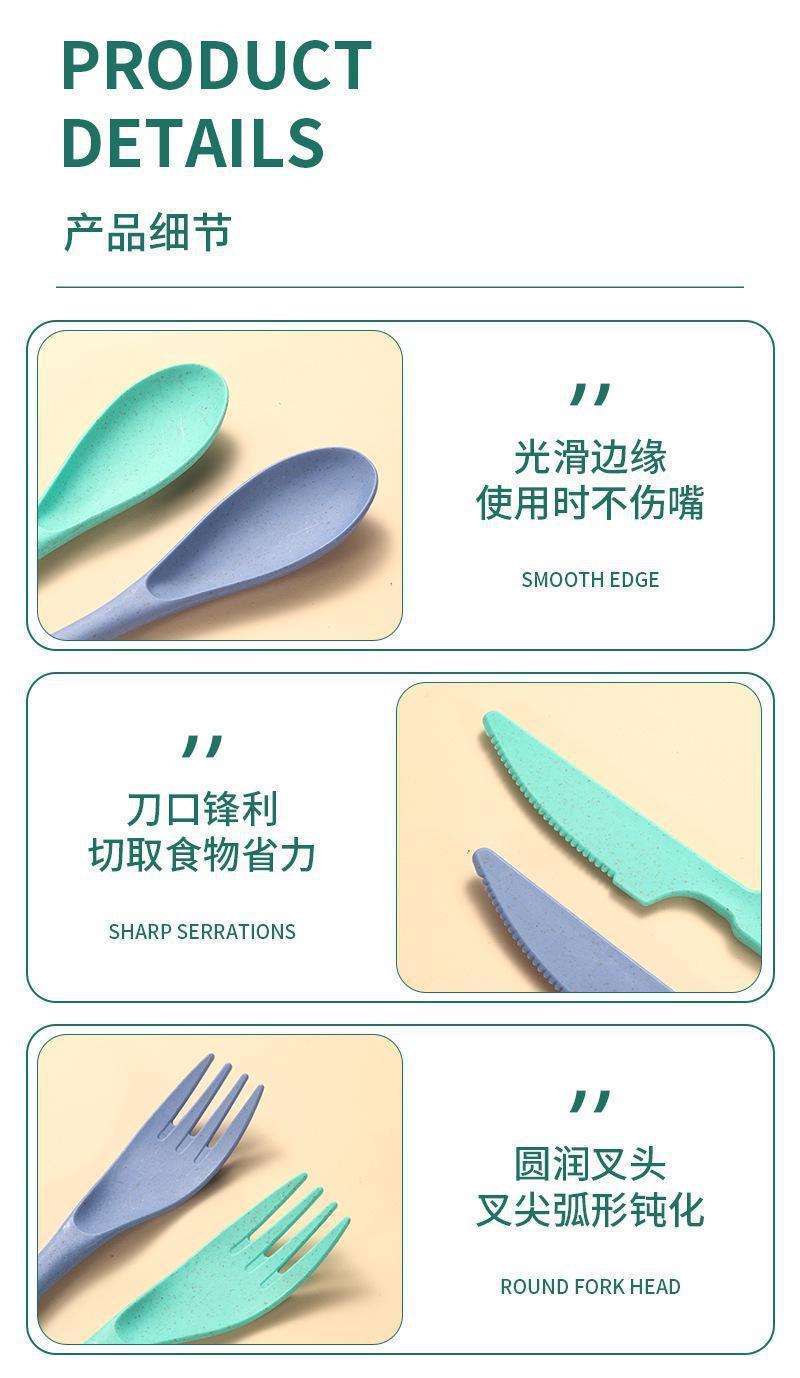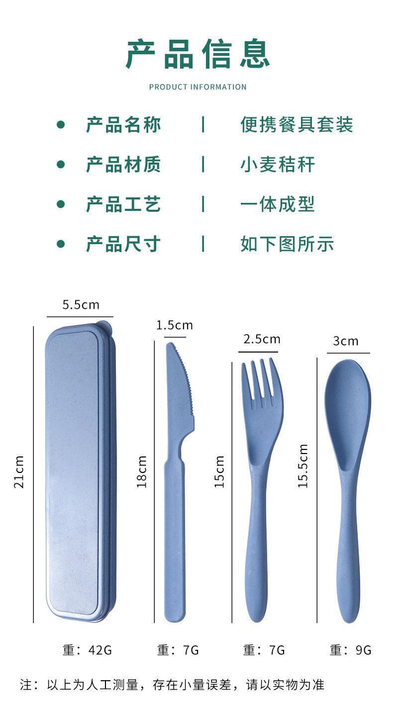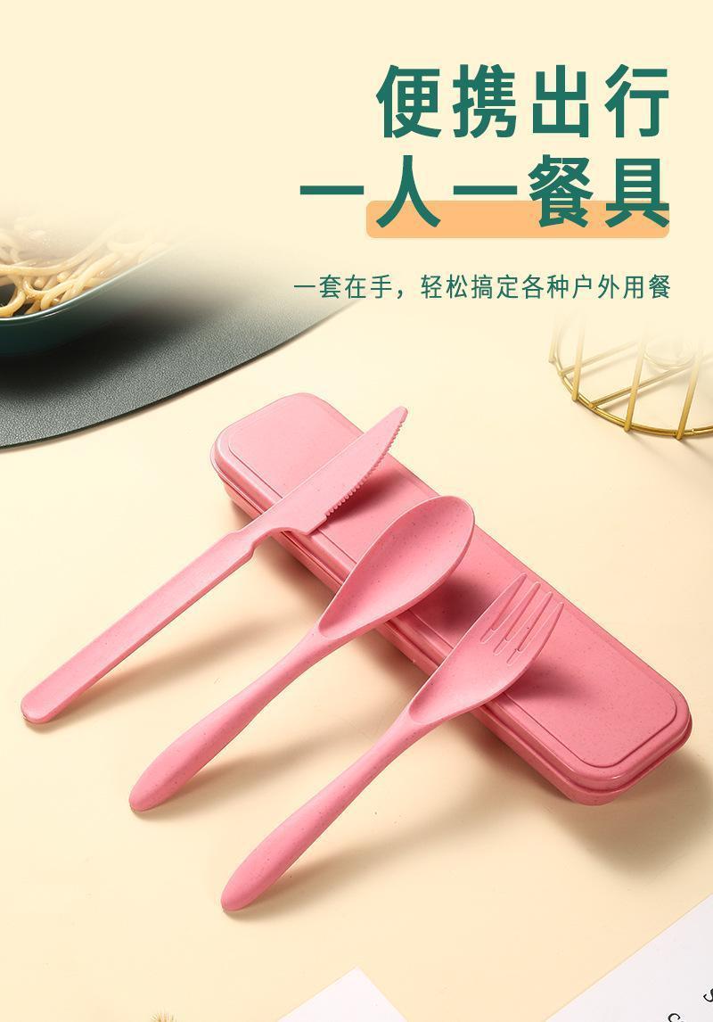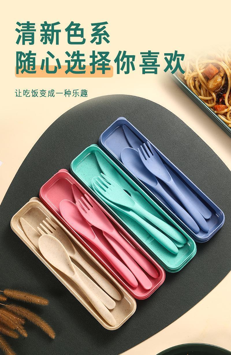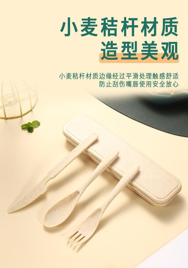 小麦秸秆刀叉勺三件套餐具套装学生便携旅行户外北欧风塑料餐具盒