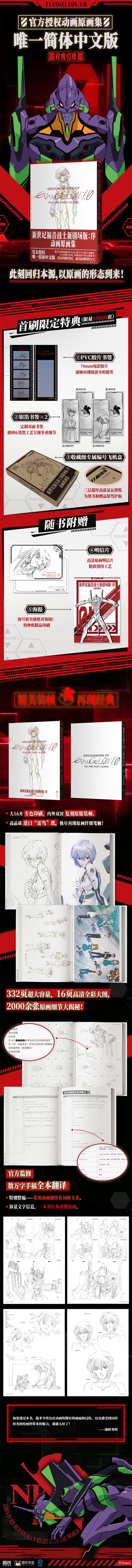 本书为新剧场版四部曲中的开篇之作《新世纪福音战士新剧场版:序》的动画原画集,其中收录了以庵野秀明为首的动画制作团队所绘制的超2000张典藏原画及16页高清全彩大图,展现出超高水准的作画功底与设计构想。