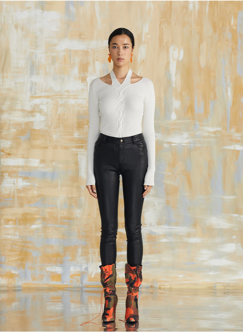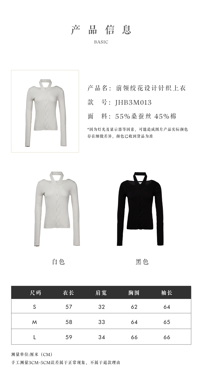 JUDYHUA 前领绞花设计针织上衣 JHB3M013