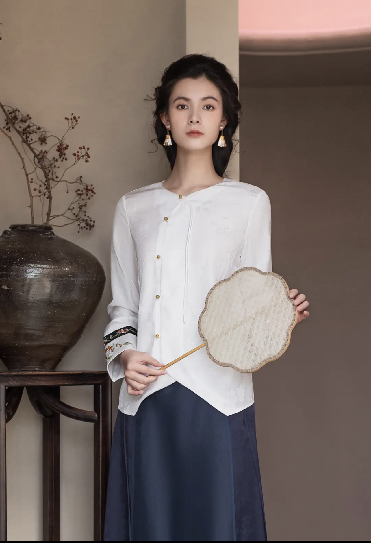 【林栖设计小店】2025春绣花复古气质百搭新中式衬衣1942513
