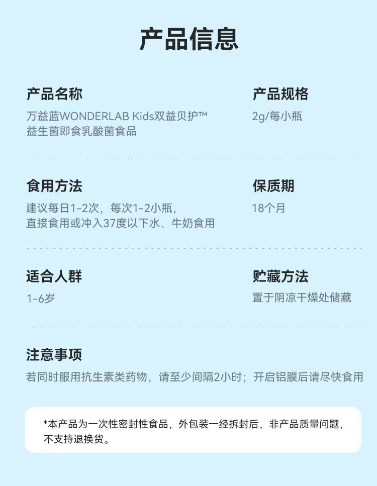 【赠3瓶】WonderLab万益蓝儿童益生菌2g 30瓶