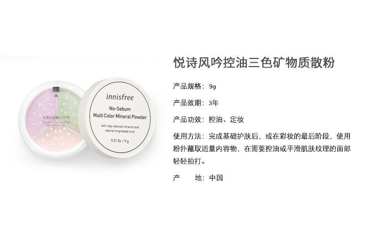 【爆款超低价预售 急单慎拍】悦诗风吟三色散粉矿物质控油定妆散粉提亮肤色轻薄透气自然裸妆