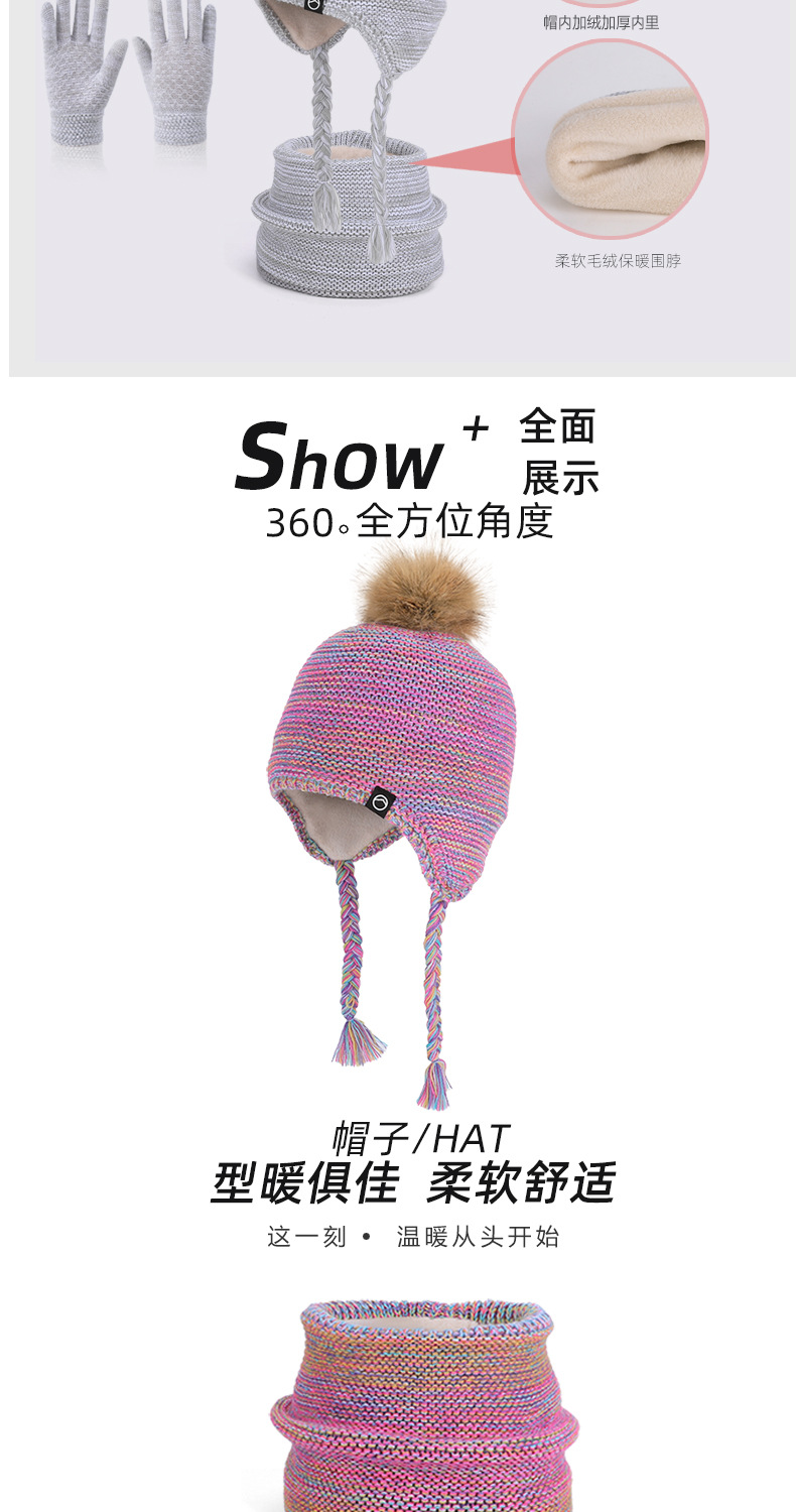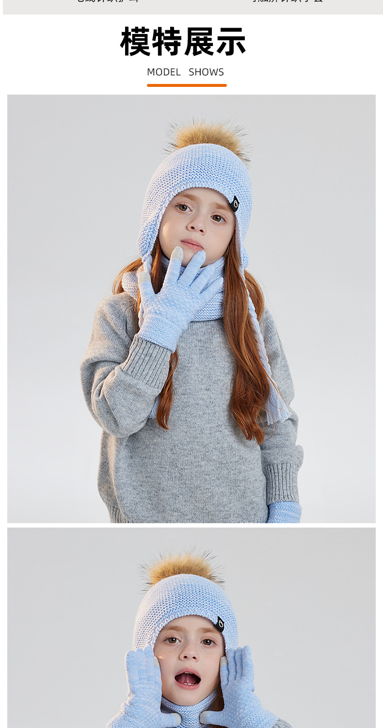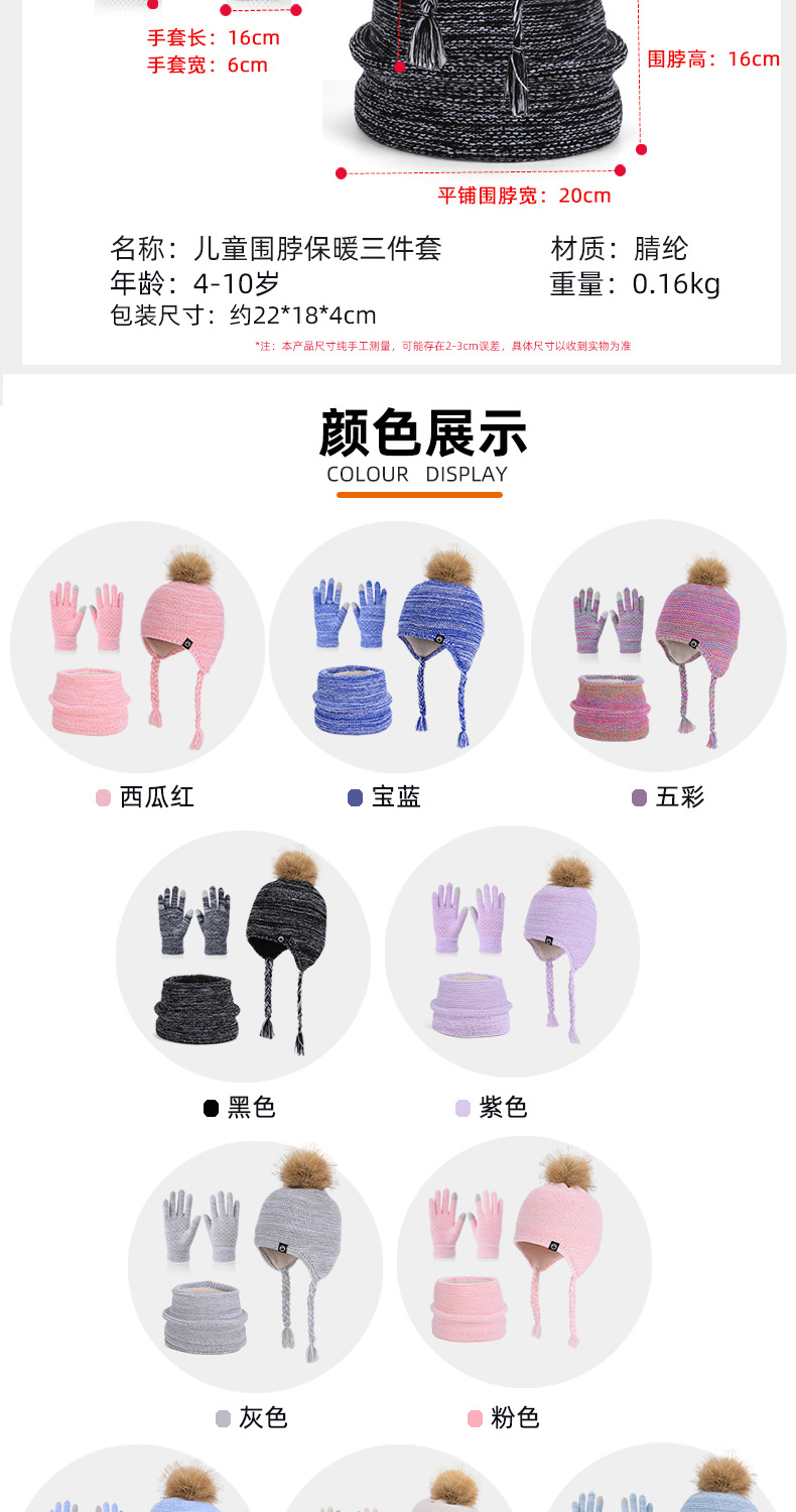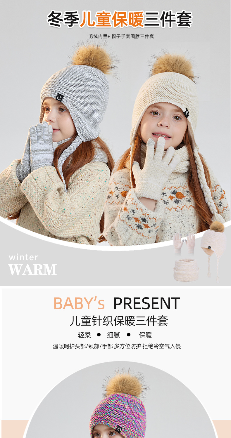 儿童帽子围脖手套三件套冬季男女宝宝户外加绒男宝女宝护耳帽冬季