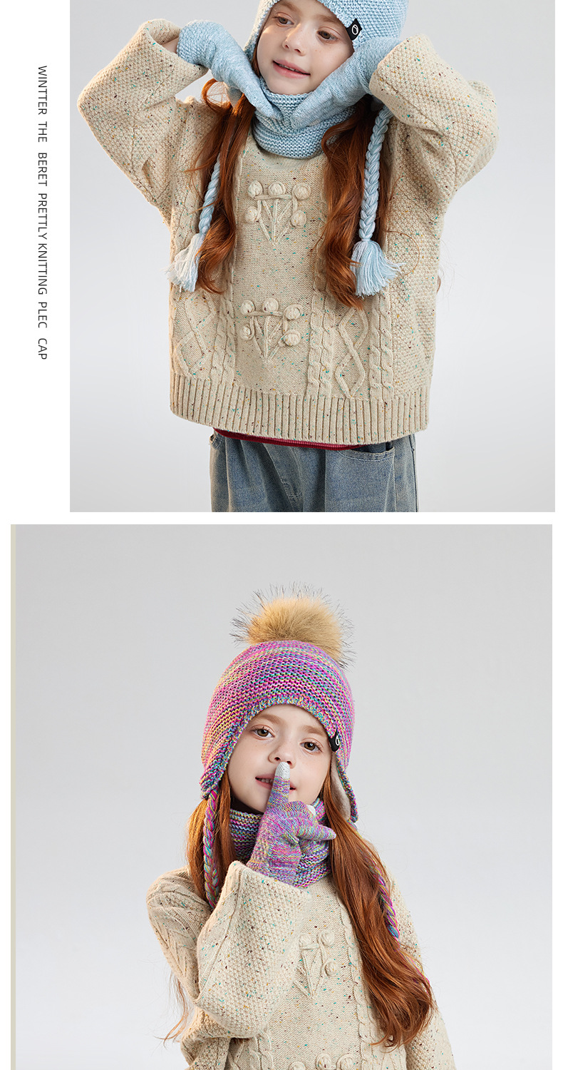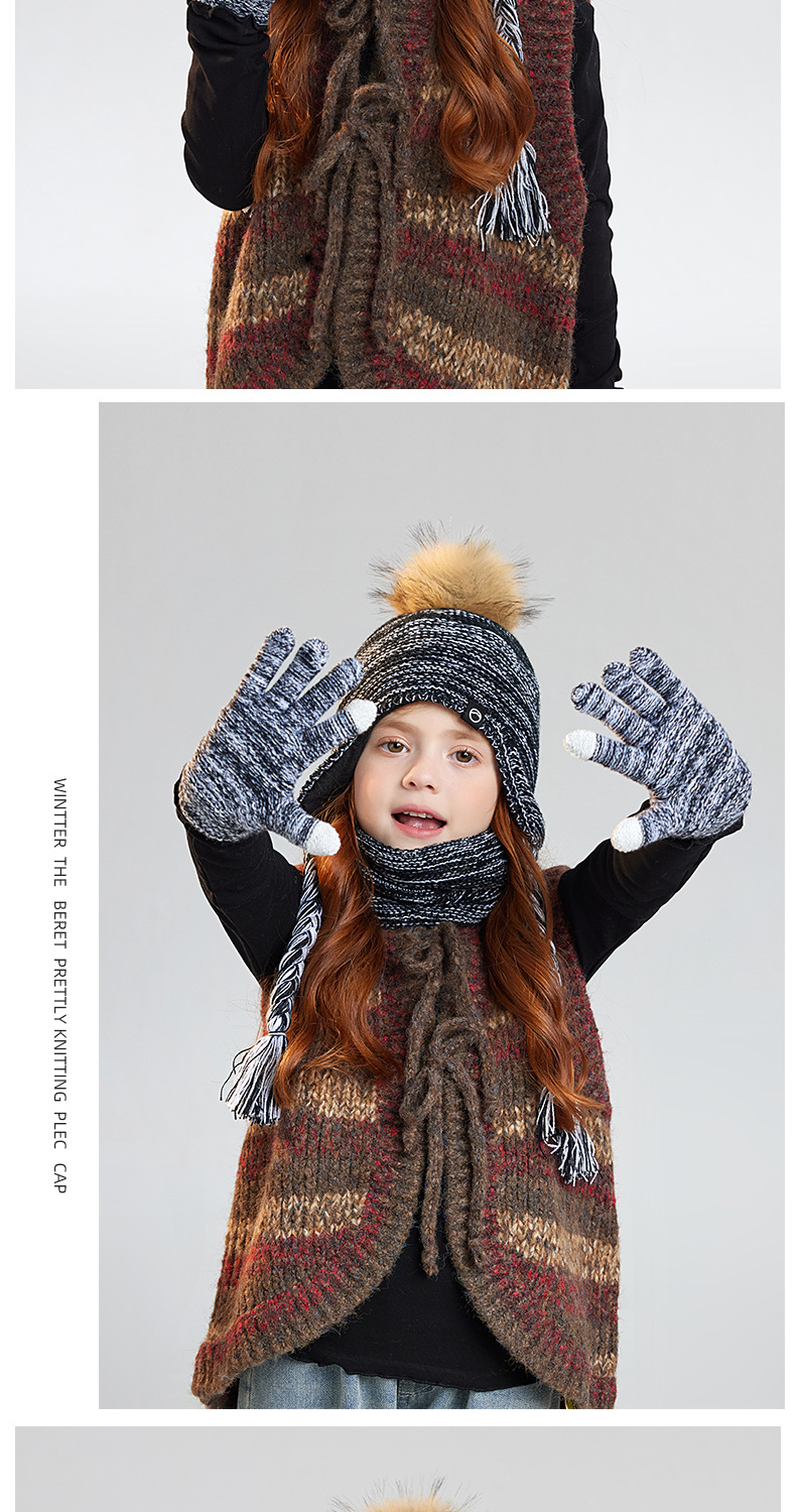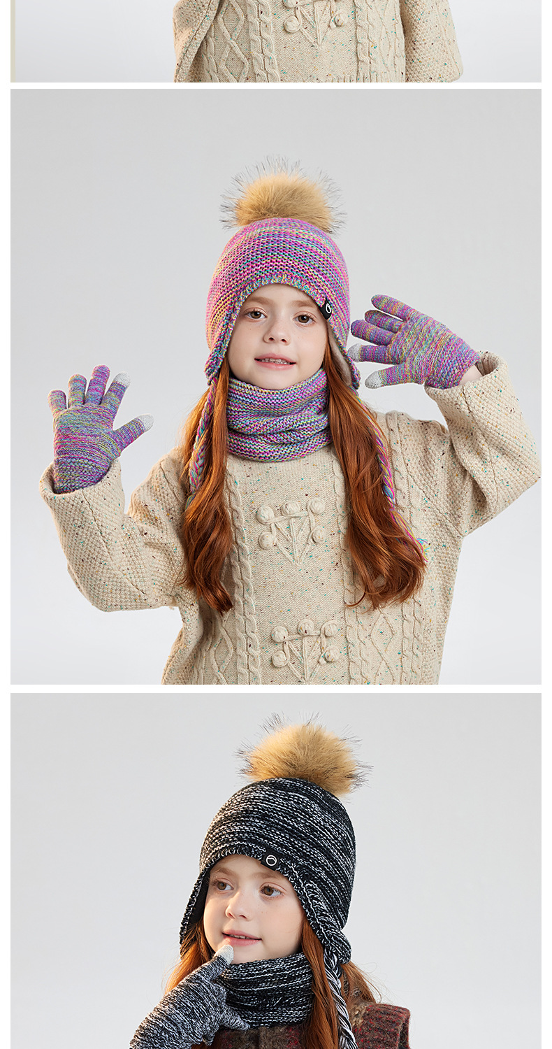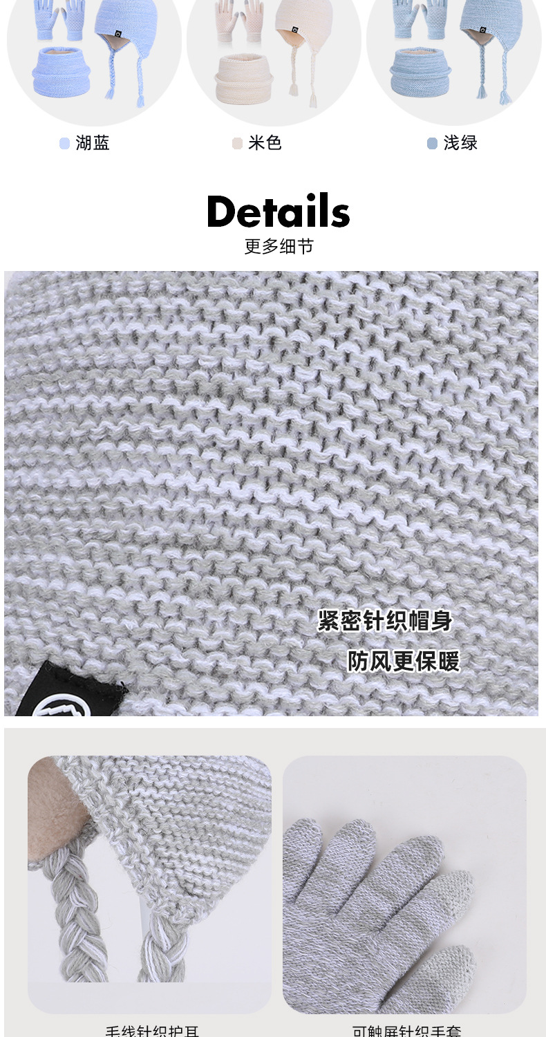 儿童帽子围脖手套三件套冬季男女宝宝户外加绒男宝女宝护耳帽冬季