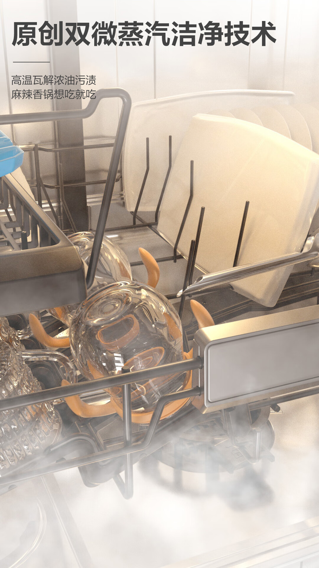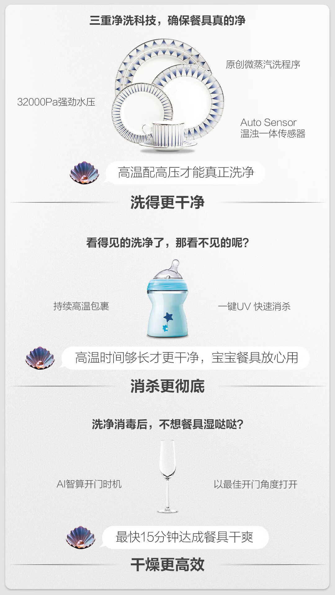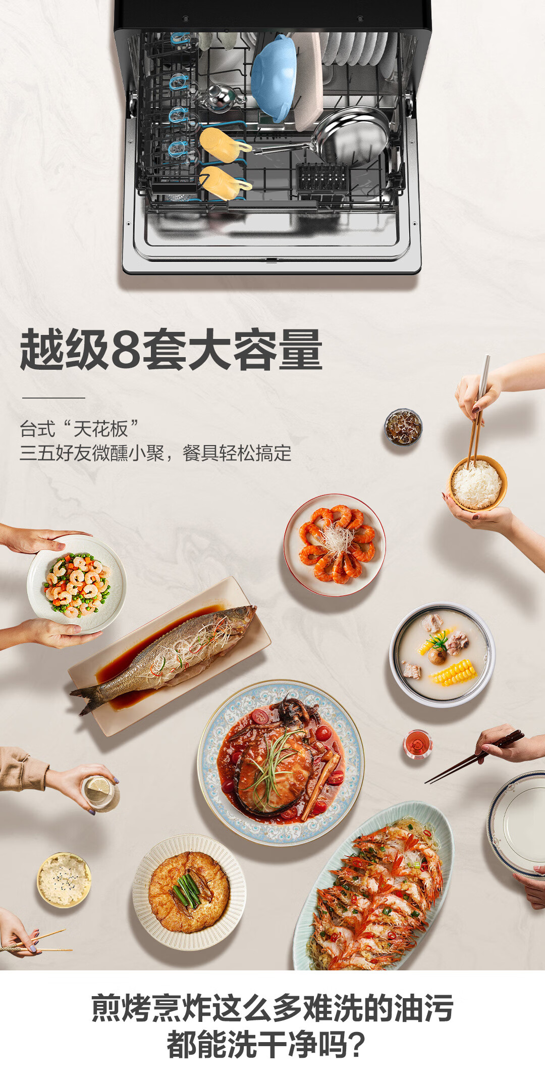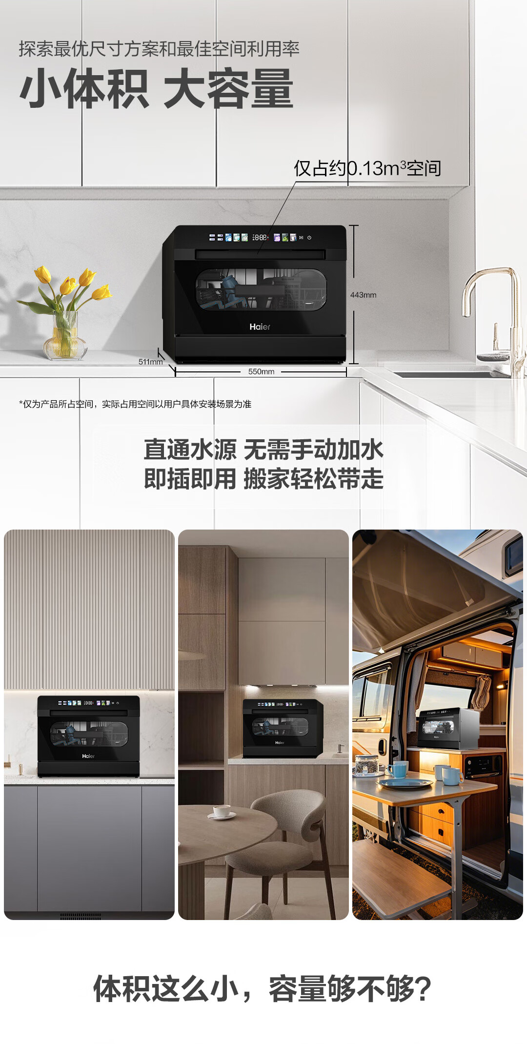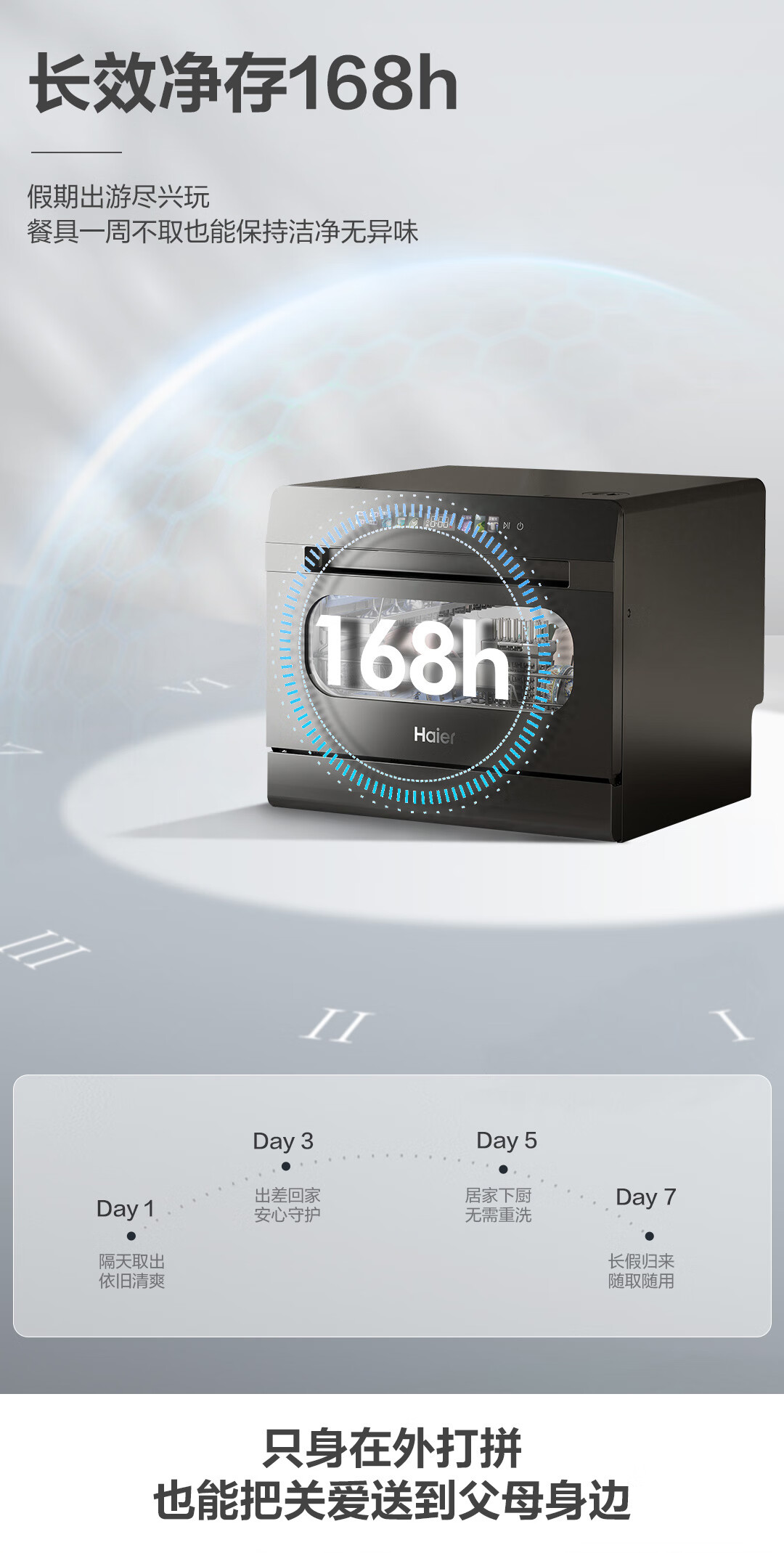 海尔(Haier)双面洗台式洗碗机小海贝 8套容量 晶彩全触屏 洗消一体 自动开门速干 7天存储ETW83286KHU1