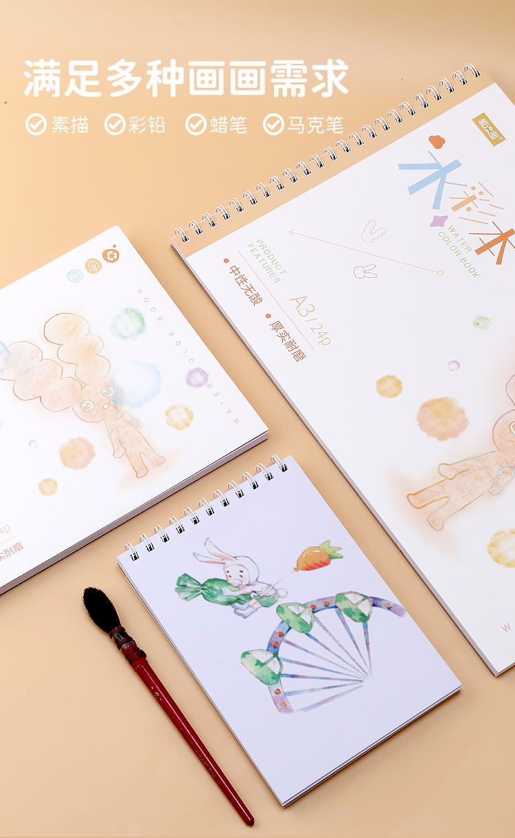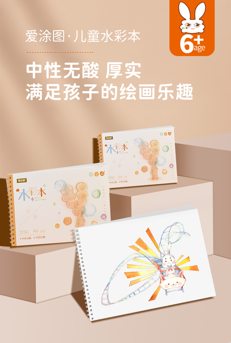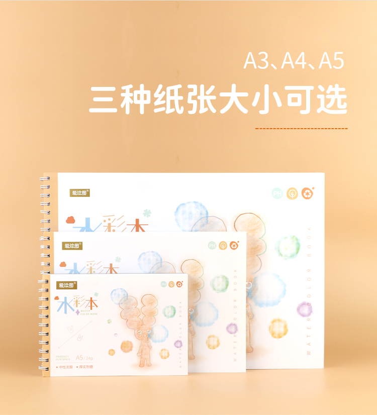 爱涂图无酸180g水彩本水彩纸画画本油画棒专用纸绘画本成年手绘本空白画册本彩铅随身旅行A5A4A3