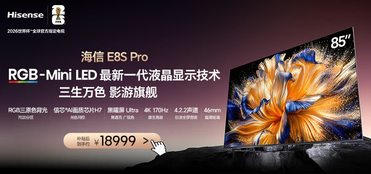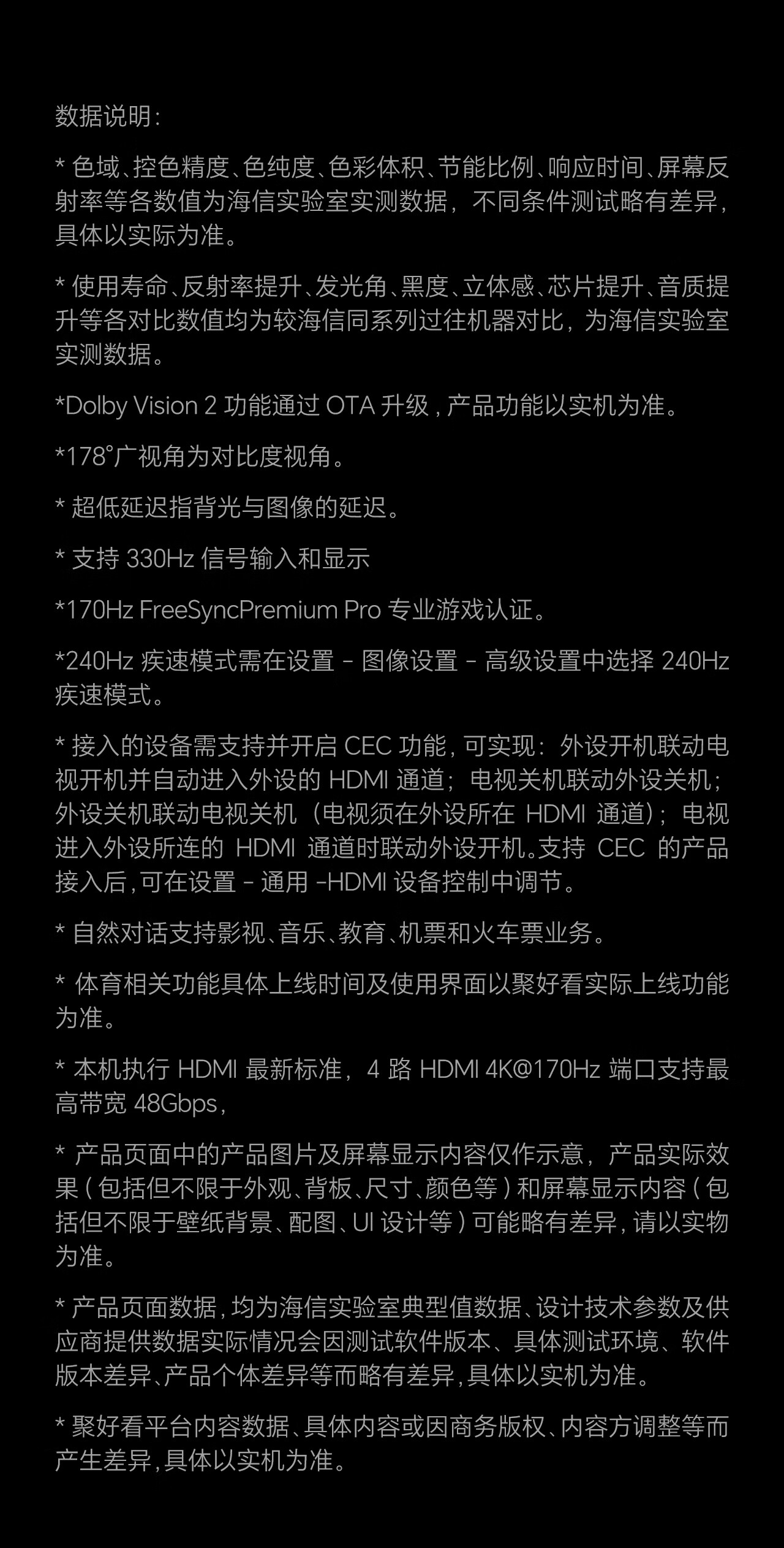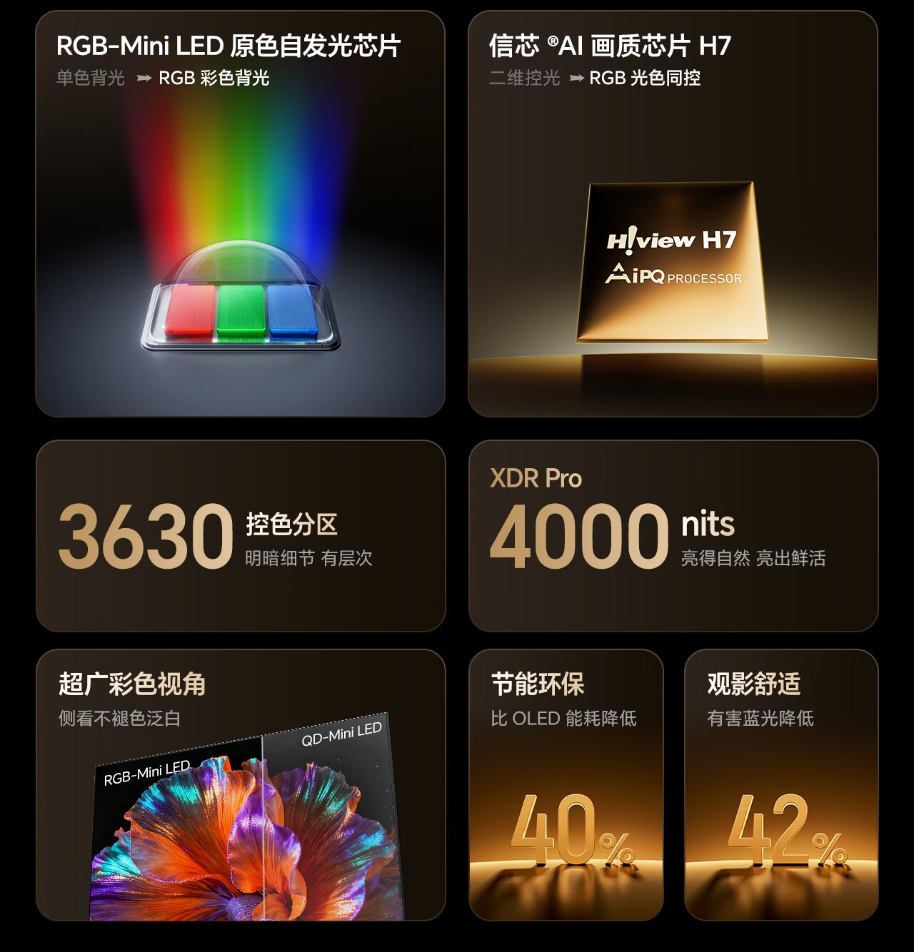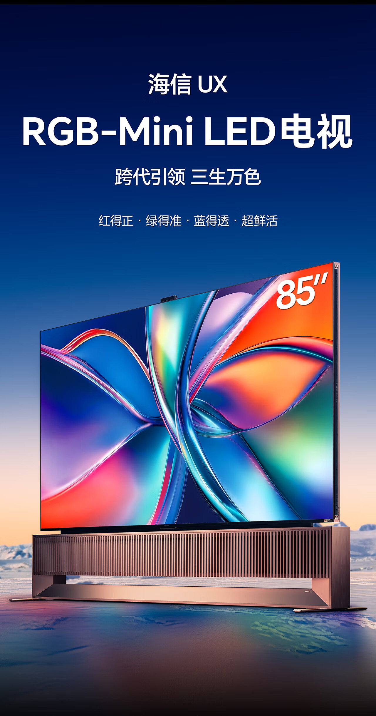 海信85UX 85英寸电视 RGB-Mini LED三维控色 信芯H7 黑曜屏Ultra 帝瓦雷音响 85英寸