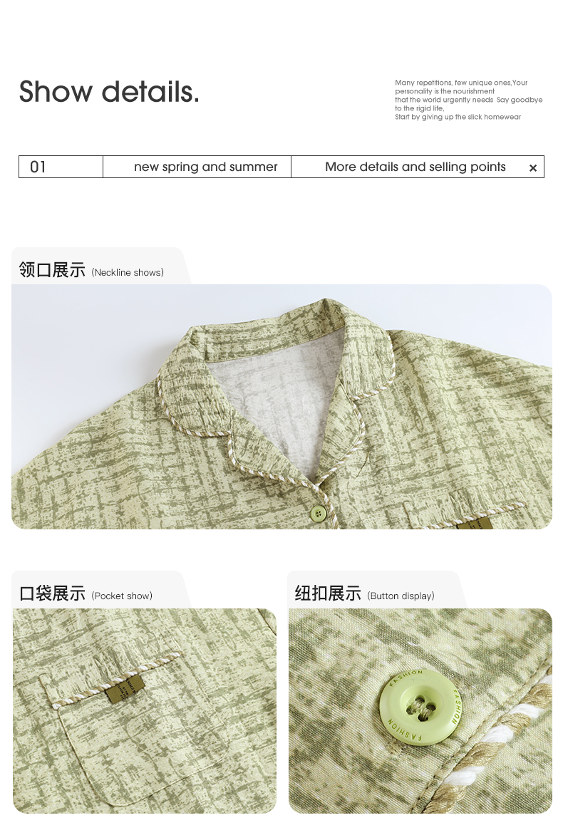 可人儿小众设计师新款奥力绵女士睡衣春夏短袖可外出家居服套装