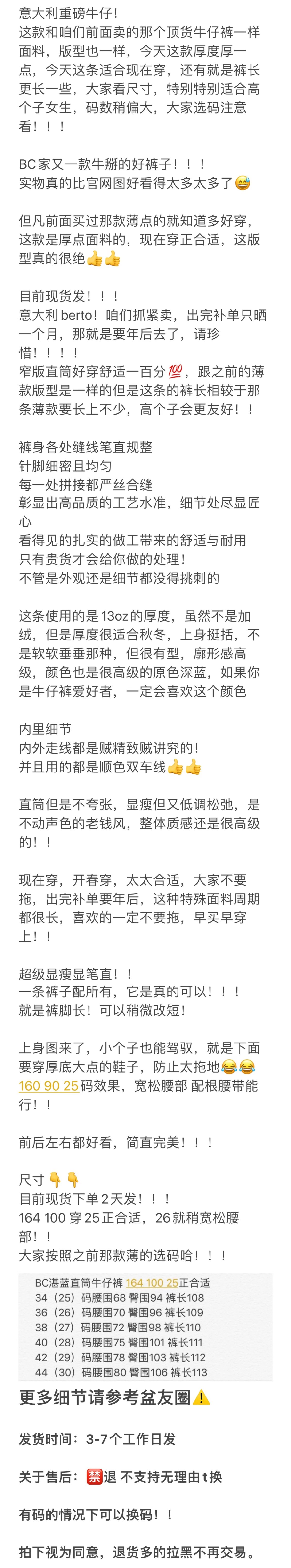 重磅渠道 bc湛蓝直筒铅笔牛仔裤 意大利berto原色牛仔裤