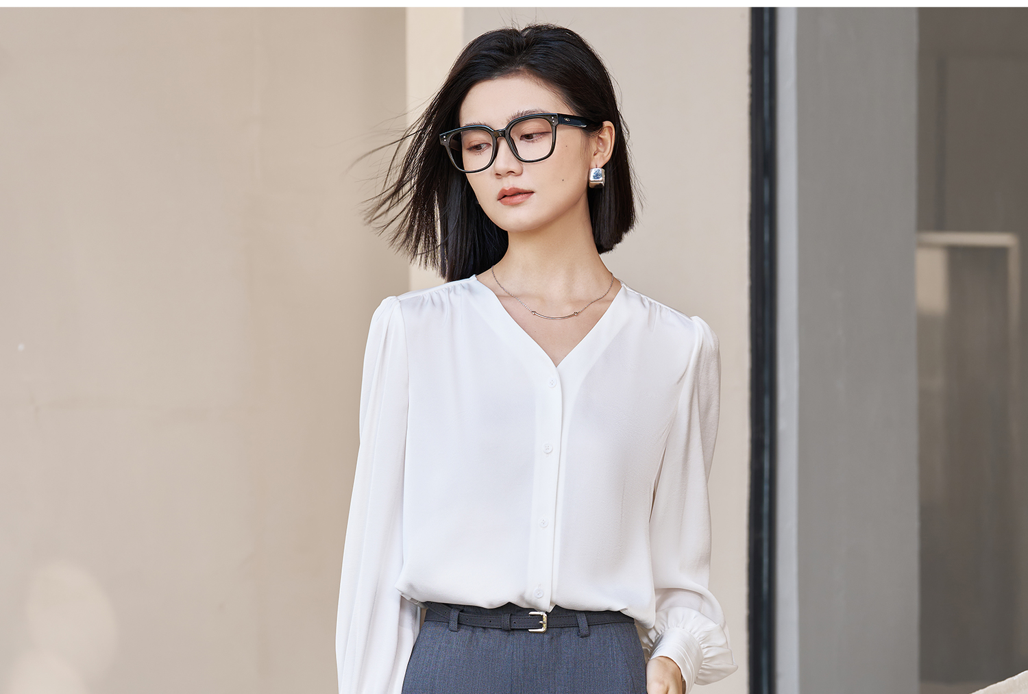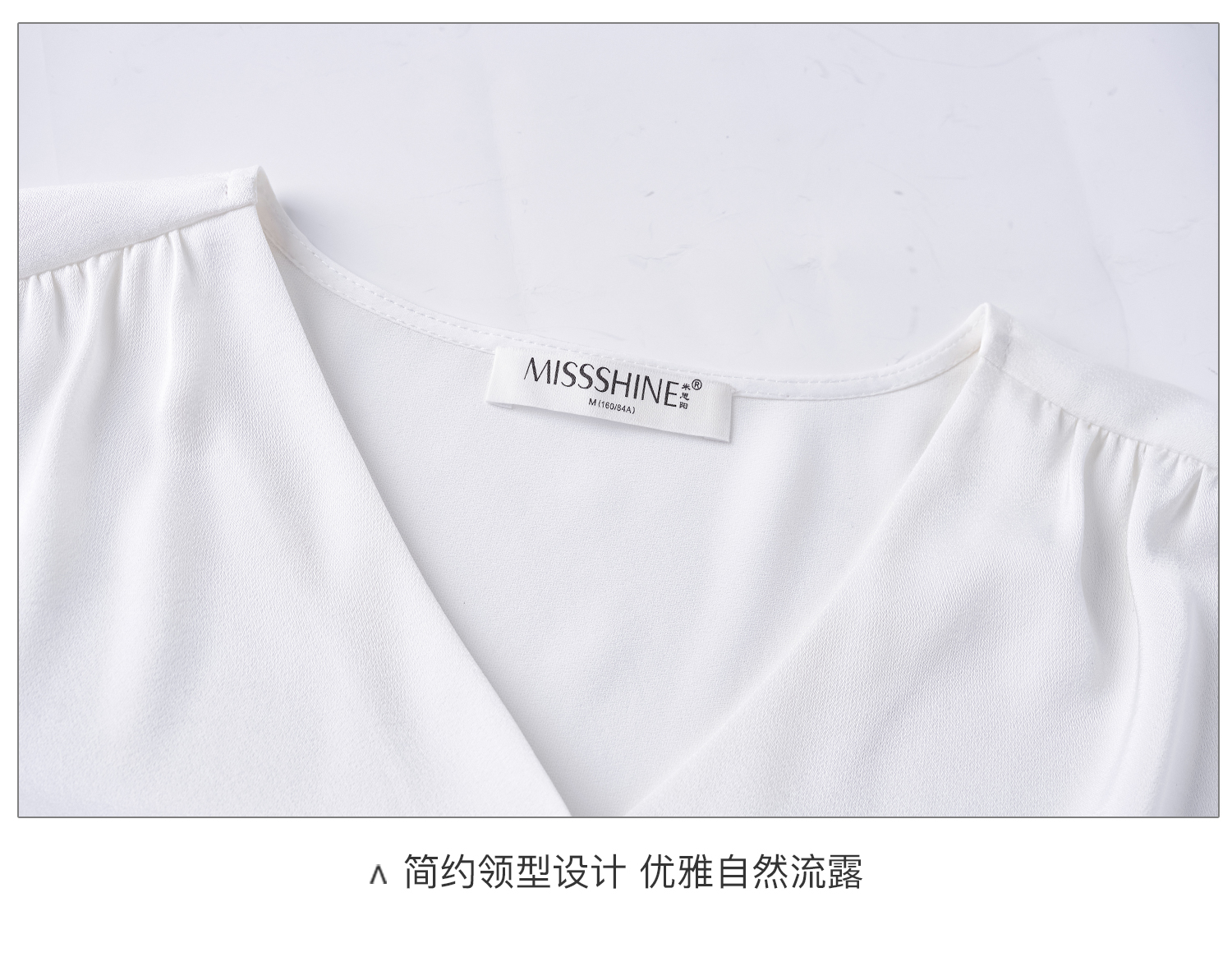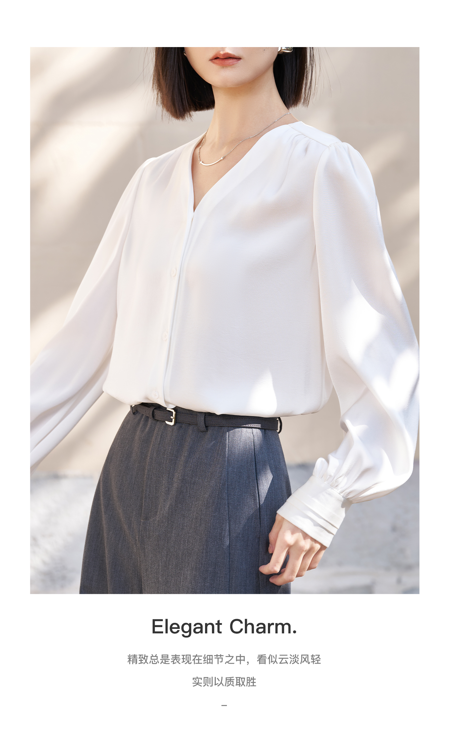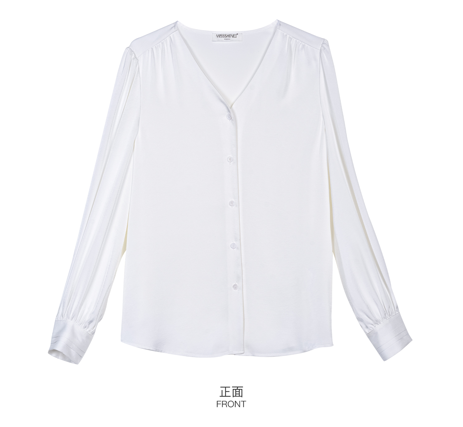 剩XL 米思阳2026春季新款通勤极简白衬衣V领宽松单排扣衬衫女5260