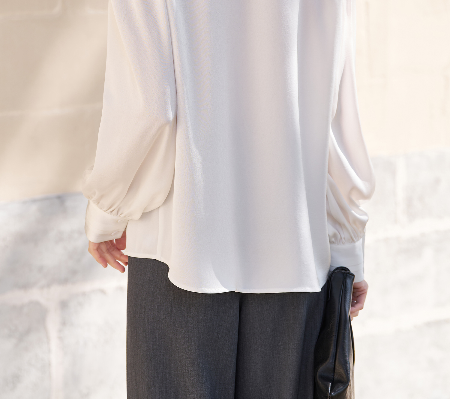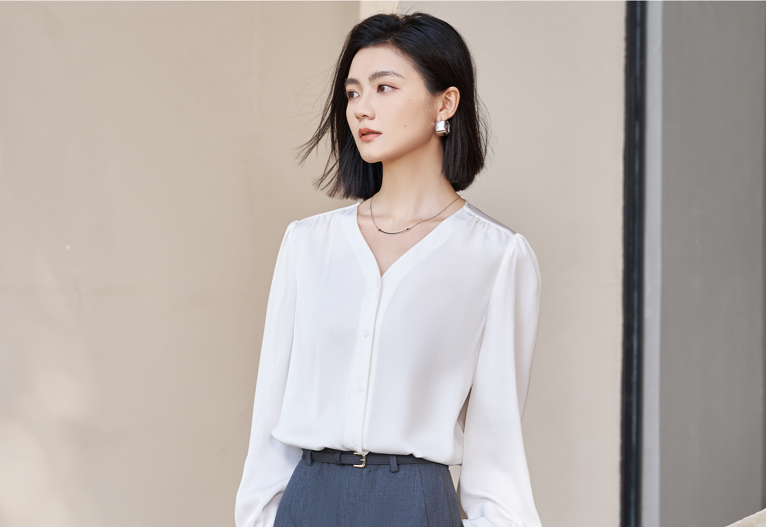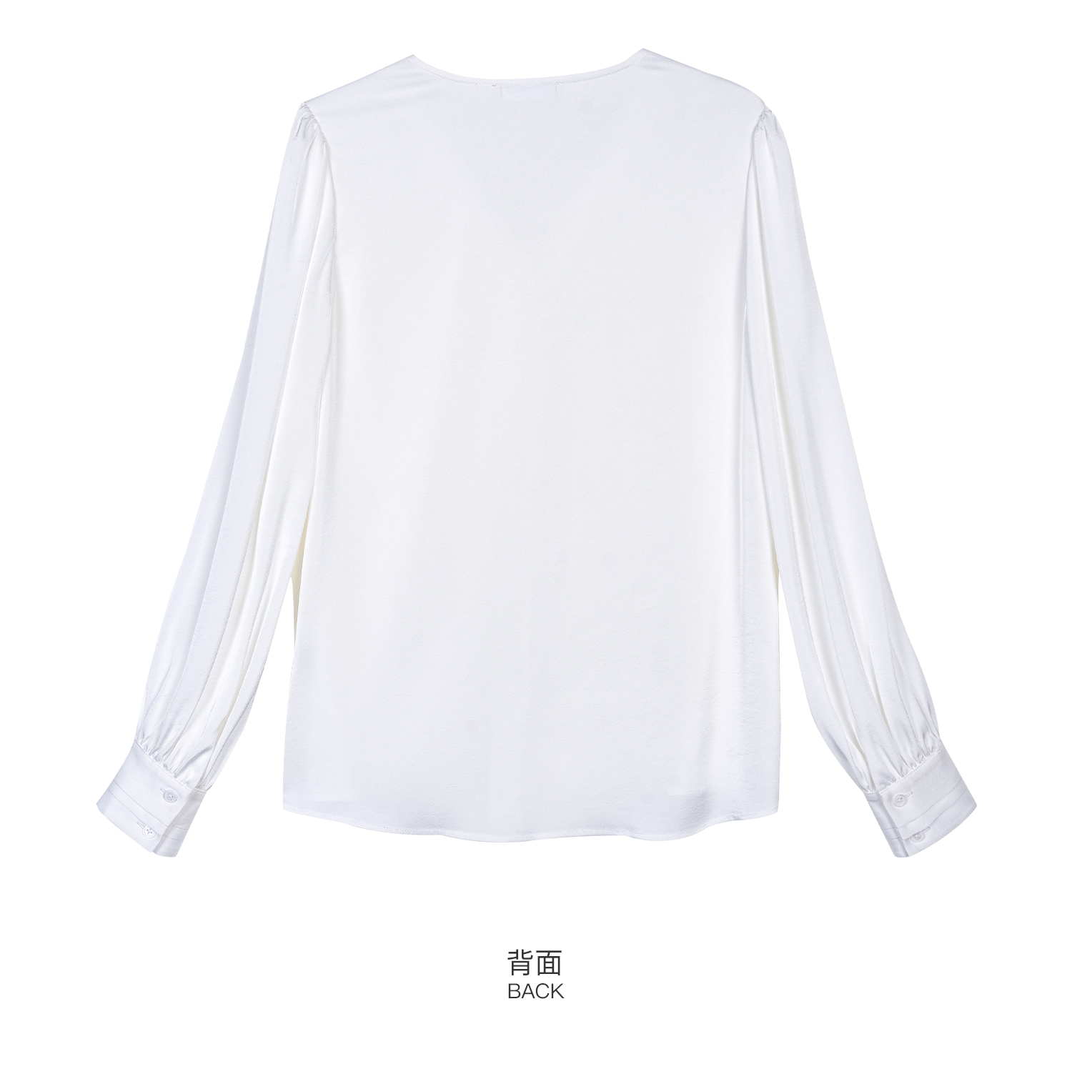 剩XL 米思阳2026春季新款通勤极简白衬衣V领宽松单排扣衬衫女5260
