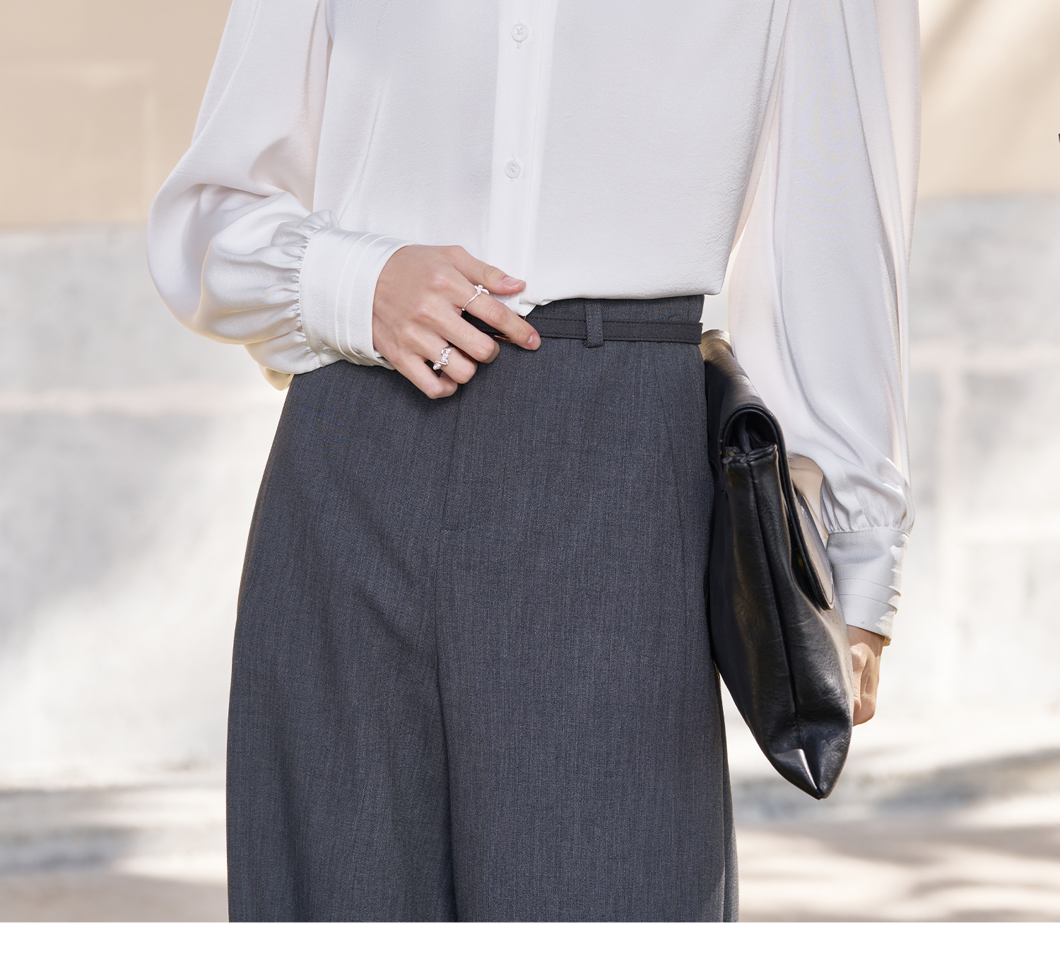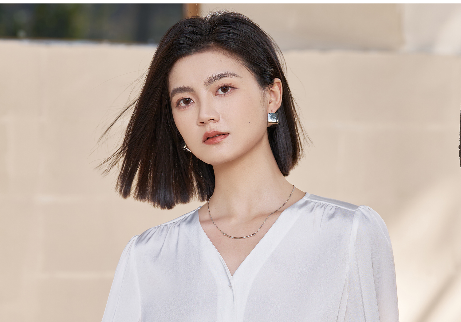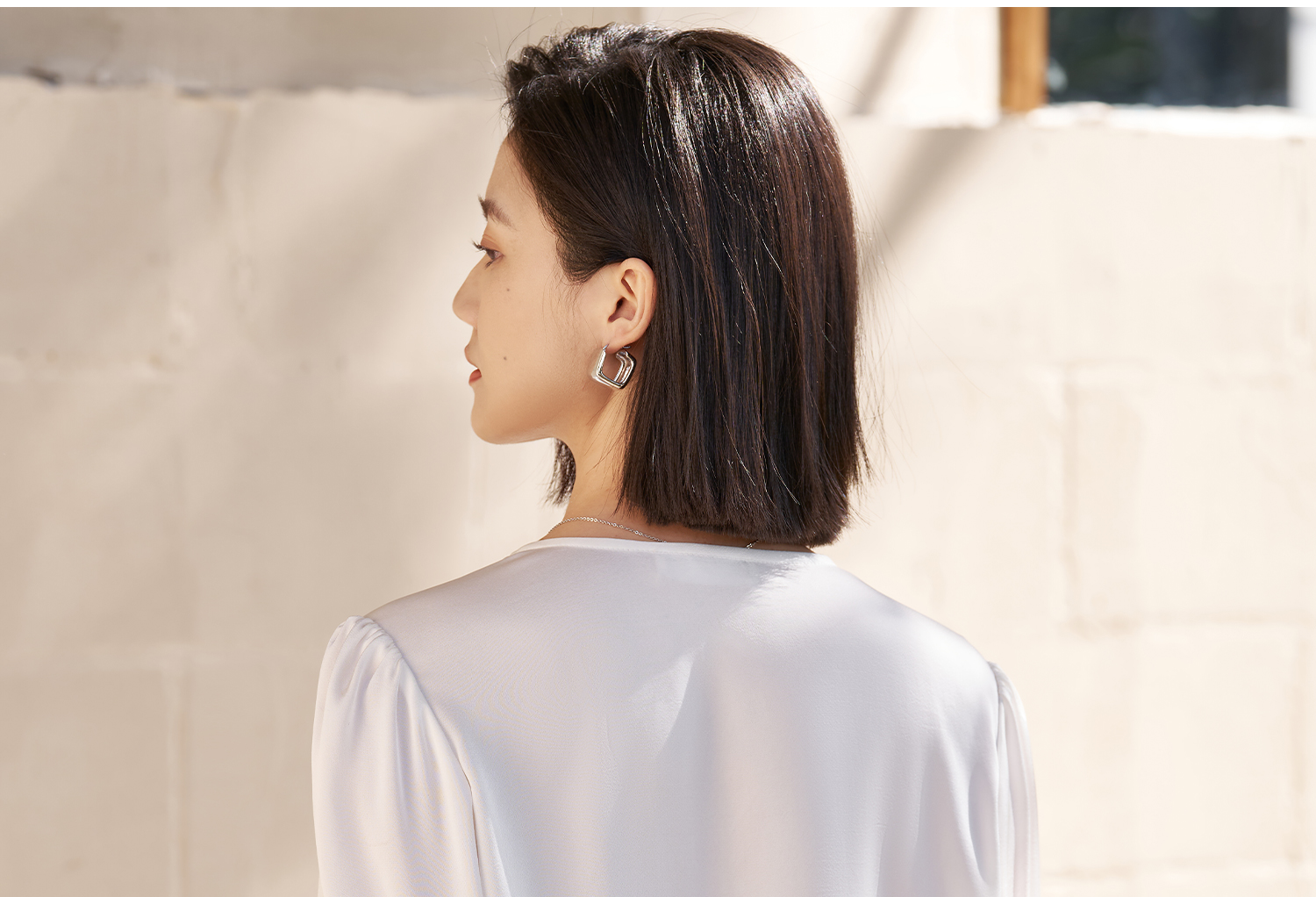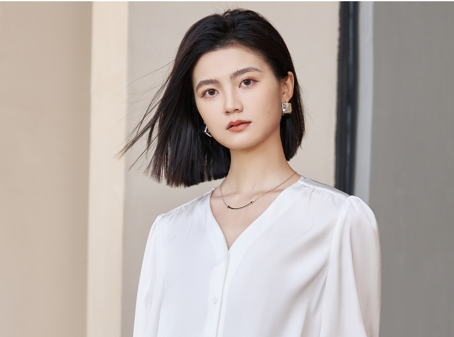 剩XL 米思阳2026春季新款通勤极简白衬衣V领宽松单排扣衬衫女5260