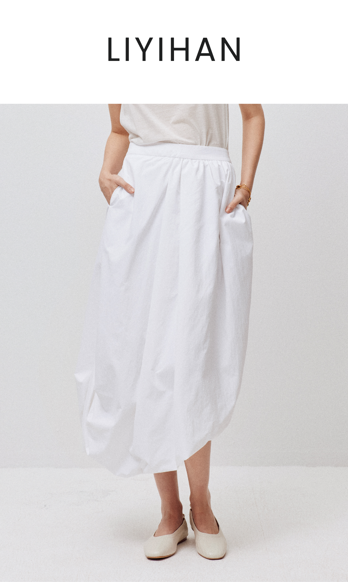 LIYIHAN设计感时尚气质休闲不规则棉感中长款半裙