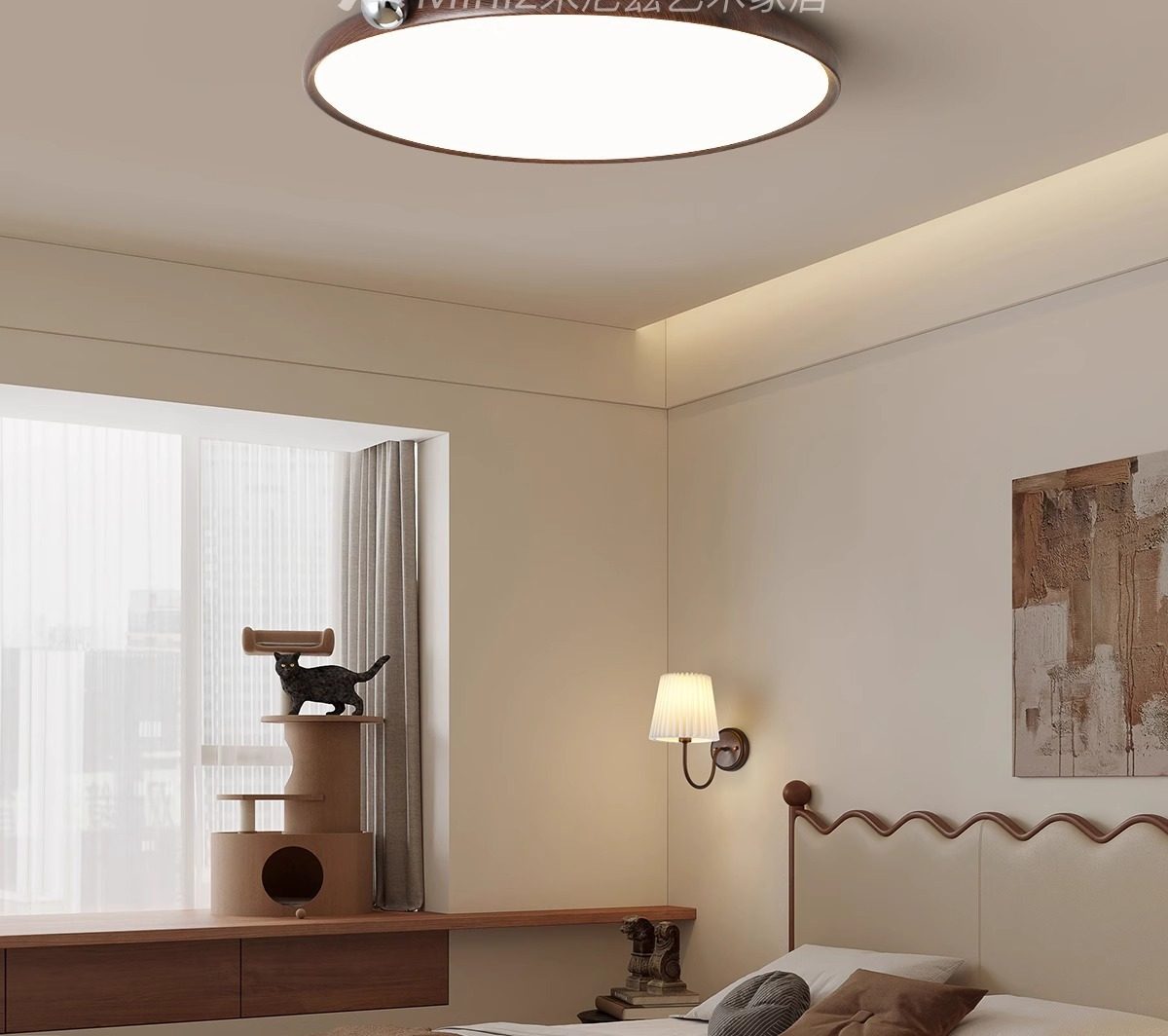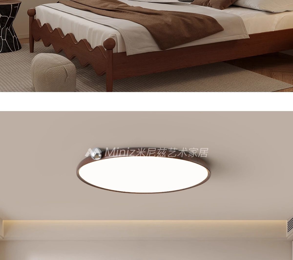 全灯复古灯纹胡桃木日式侘光谱风奶豆书房超薄卧室吸顶灯护眼寂
