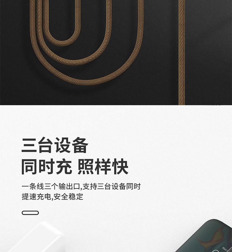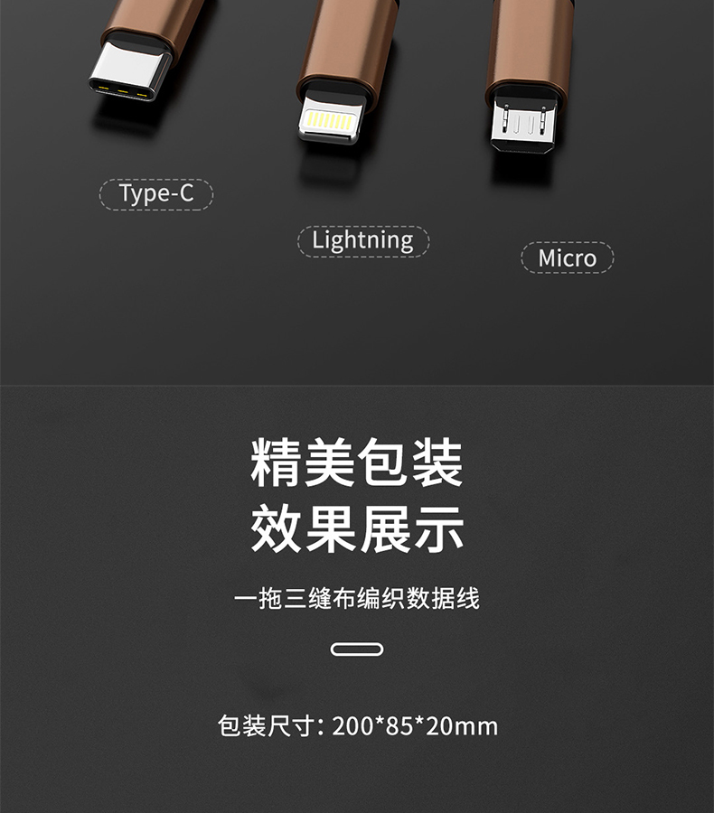 金属编织一拖数据线支持100w闪充数据线缝布编织快充 商品图3